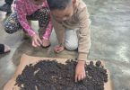Com isso em mente, a professora Roseane, da turma nível II, elaborou uma dinâmica fantástica com os alunos. Ela confeccionou com um tecido TNT um tapete de cores e, em conjuntos rolinhos com cores iguais do tapete, ela formou duplas.