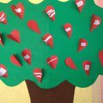 E para finalizar, realizaram a árvore da vida, proposta pela professora, na qual utilizaram papel vermelho para a confecção de corações e deveriam produzir frases escritas de livre e espontânea vontade colocadas dentro do mesmo; frases estas que visavam promover o incentivo à vida, a motivação e o afeto ao próximo formando a árvore de incentivo à vida.