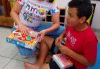 1 pedaço de plástico (corte da sobra da própria garrafa) para fechar a boca da garrafa é necessário fazer um buraco no centro, peça para um adulto