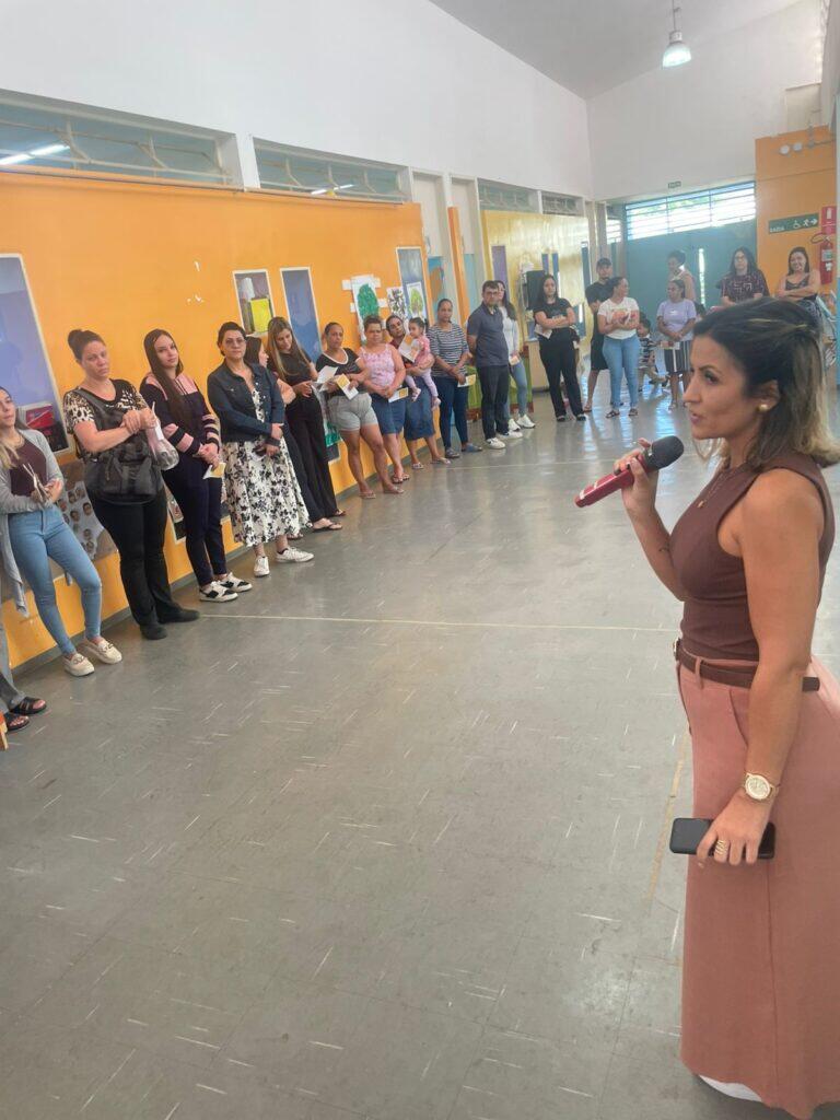 A Nutricionista Michelle realizou o acolhimento com as famílias dos estudantes, com o apoio das equipes escolares nas reuniões das Unidades Escolares: EMEB Sebastião Bezerra Lins e EMEB Maria Lucia (Jd. dos Reis) no dia 30/09, EMEB Mariana Thomaz Ferreira e EMEB Zilda Arns no dia 01/10 com o objetivo de apresentação do folder “Alimentação Saudável em Casa”, elaborado para orientação e conscientização das famílias sobre a importância da alimentação equilibrada na infância.