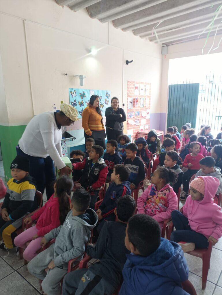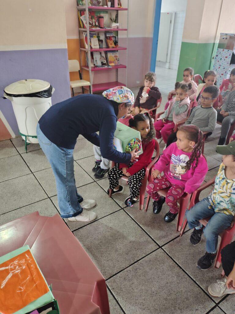 No dia 09 de outubro de 2025, foi realizada na EMEB Antônio Carlos Jobim uma atividade de Educação Alimentar e Nutricional com as Nutricionistas Rosa e Gisele com as crianças do pré dos períodos manhã e tarde. Teve como objetivo promover o contato sensorial e o reconhecimento de alimentos in natura, por meio de uma atividade lúdica que estimula os sentidos do tato e do olfato, contribuindo para a formação de hábitos alimentares saudáveis desde a infância.