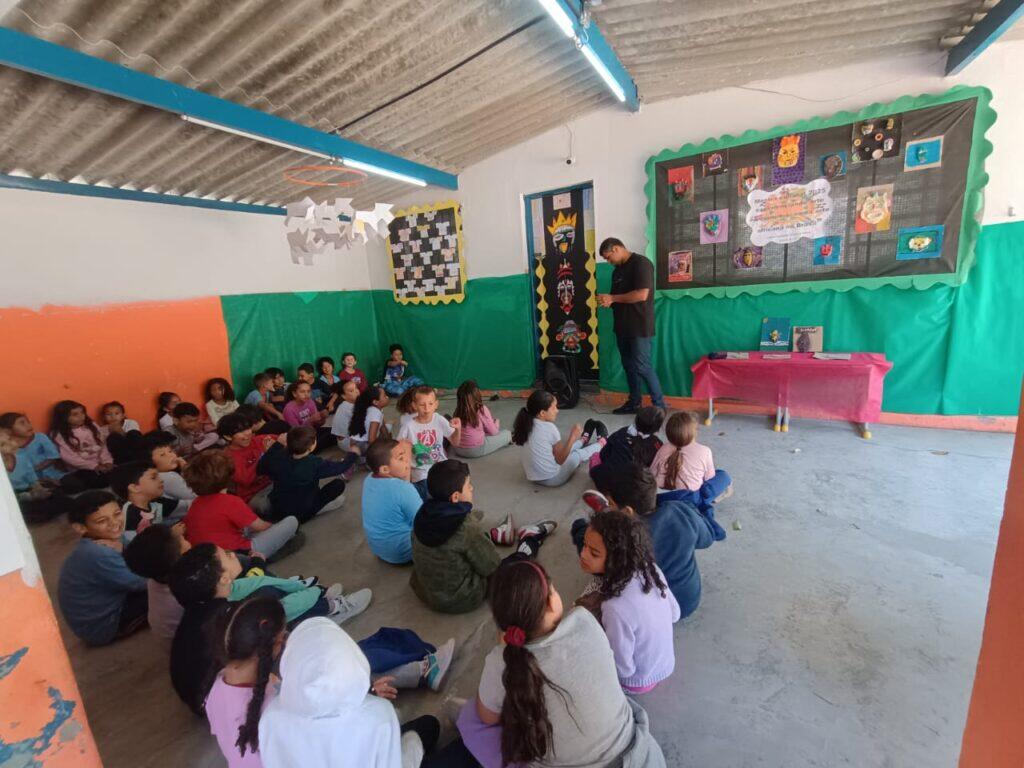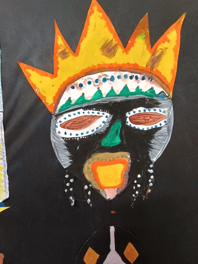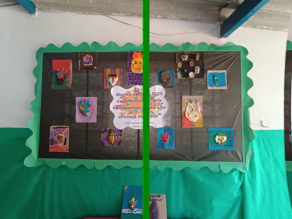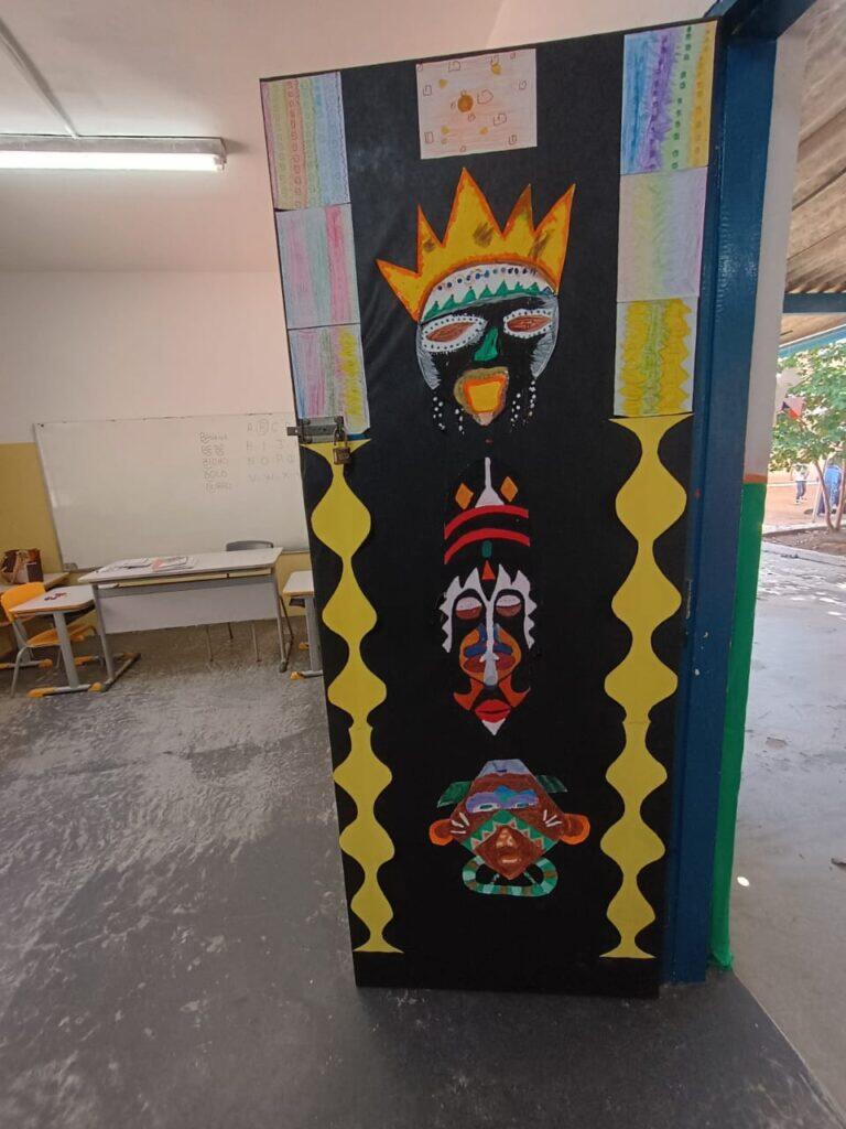 O arte educador e os estudantes mergulharam na temática “A Contribuição da Arte Africana no Brasil”, explorando questões sociais, culturais e históricas por meio de atividades criativas e significativas que valorizam a diversidade e o respeito às origens.