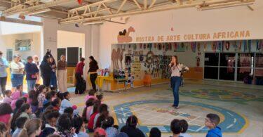 A abertura do evento foi conduzida com muito carinho e entusiasmo pelo professor de Arte, Alberto, que apresentou os trabalhos desenvolvidos com as crianças a partir das simbologias da arte africana, como os Adinkras, as máscaras e as brincadeiras tradicionais.