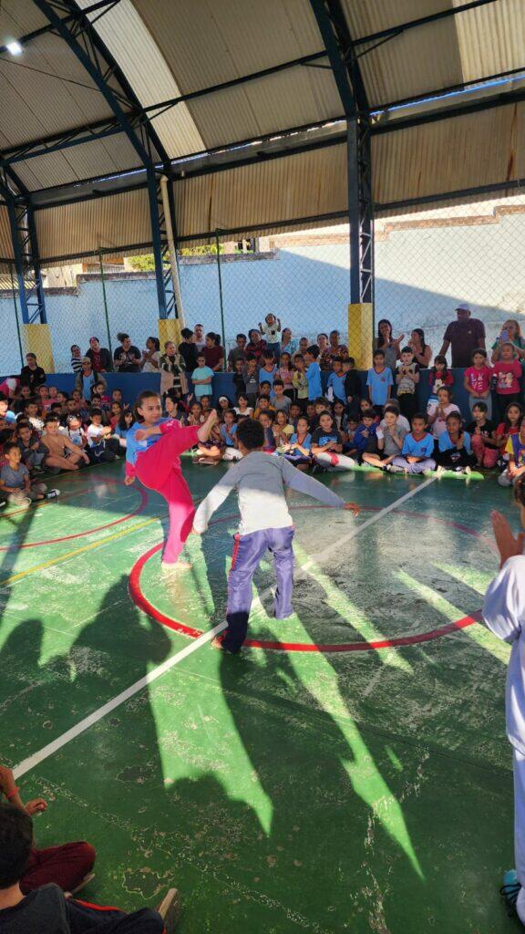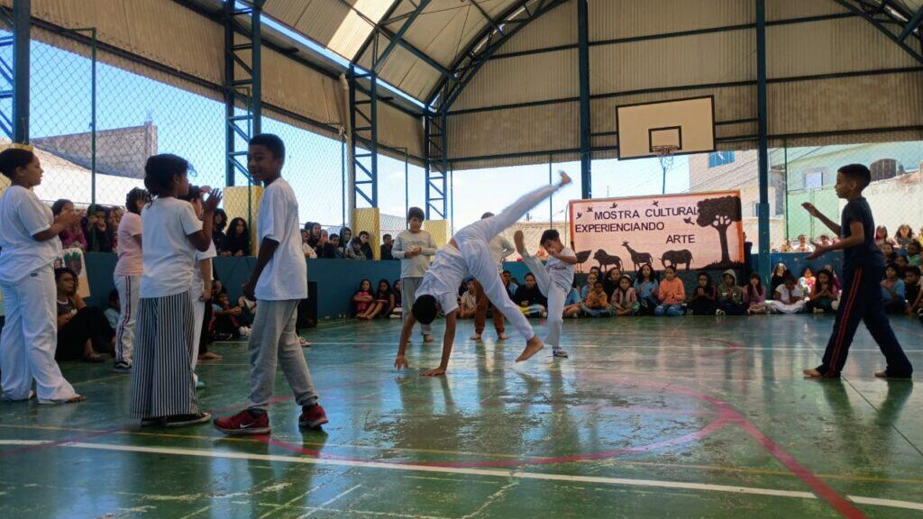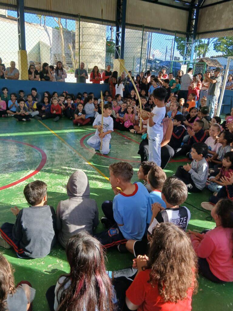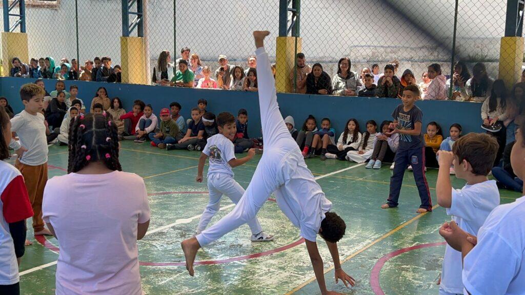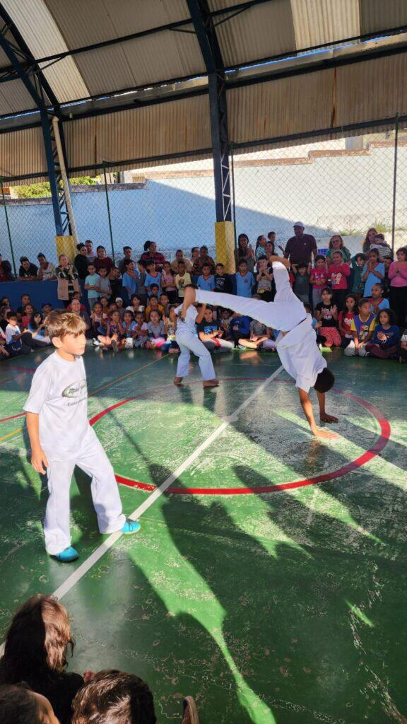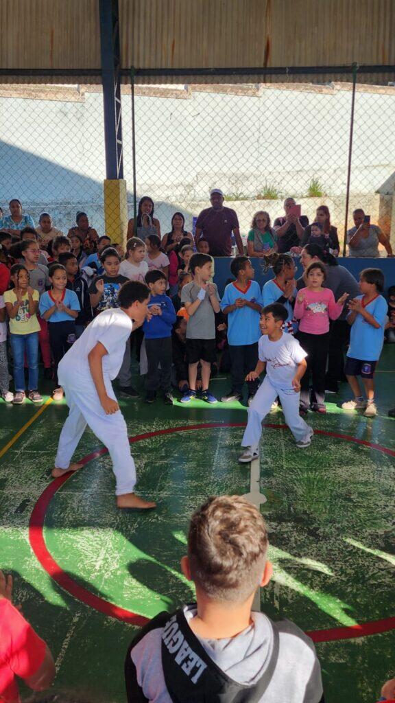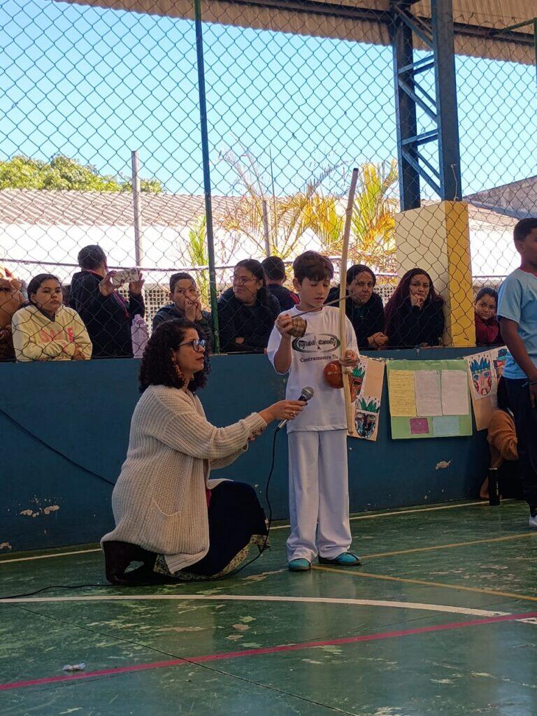 A abertura também contou com a encenação de uma ciranda de roda, a apresentação do som do berimbau, cantos de capoeira e uma roda de capoeira com os estudantes da arte-educadora Paula Gabriela. O momento encantou o público, transformando o espaço escolar em um lugar de apreciação, ancestralidade e ressignificação.