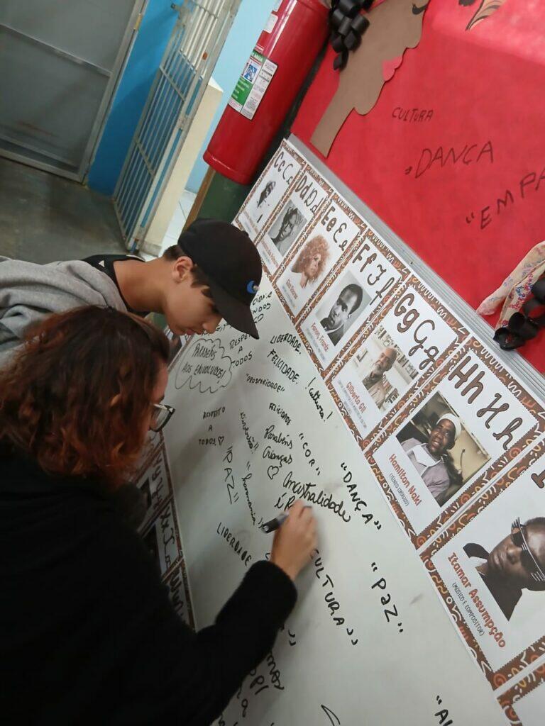 As arte-educadoras e seus alunos mergulharam na temática, explorando aspectos sociais, culturais e históricos por meio de atividades que valorizaram a diversidade e o respeito às origens.