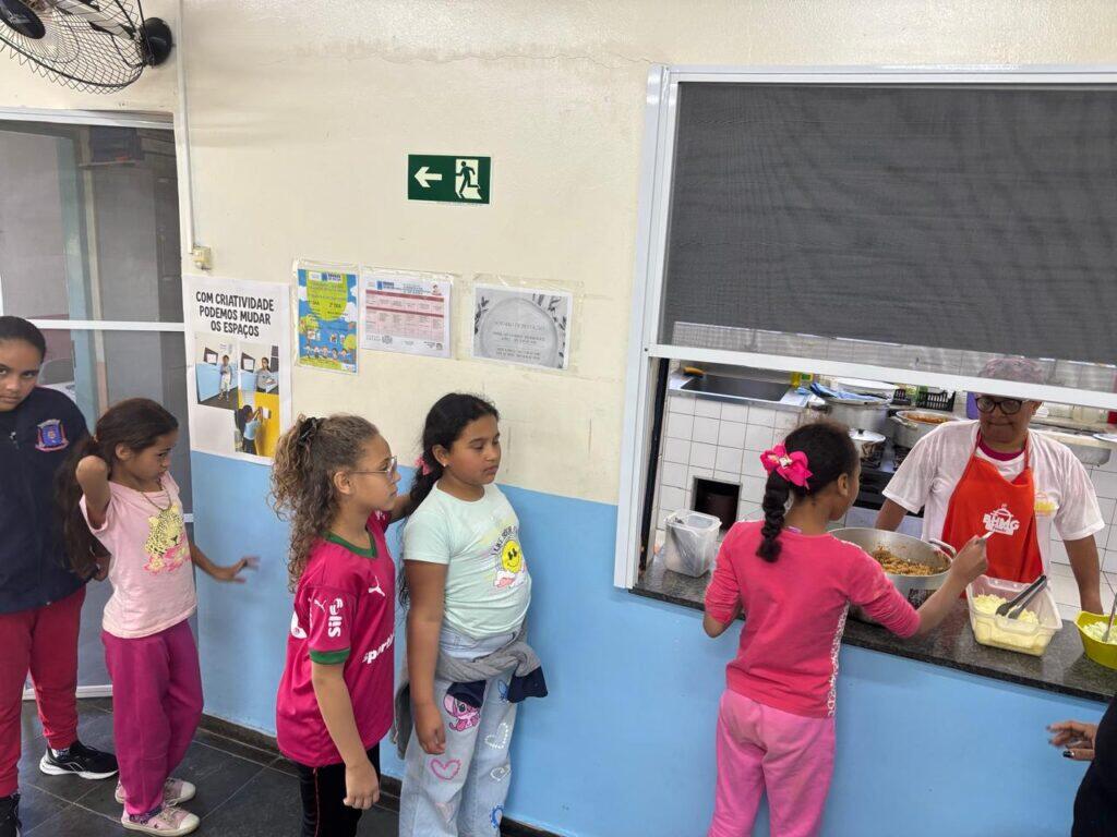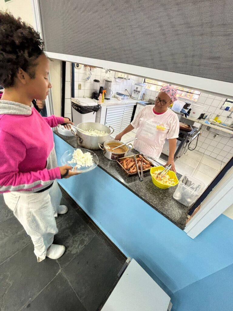 O sistema utilizado foi o autosserviço sem balcão, possibilitando que cada criança pudesse se servir de forma consciente e organizada, promovendo independência e reforçando práticas de não desperdício alimentar. Antes do momento da refeição, as crianças realizaram um desenho com as preparações que mais gostavam de comer na unidade escolar, e em seguida receberam orientações sobre o porcionamento de acordo com a vontade e necessidade de consumo, bem como sobre a importância de evitar o desperdício.