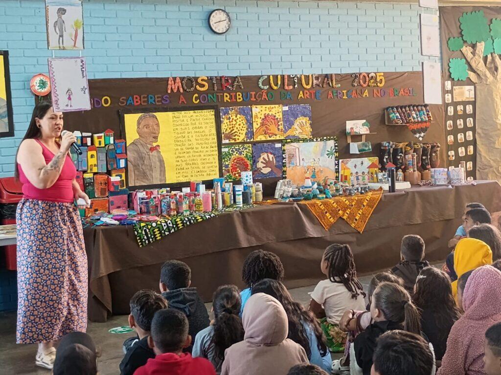 A exposição destacou a diversidade e a pluralidade da cultura africana presente no território brasileiro. As crianças compartilharam um pouco das experiências vivenciadas ao longo do ano, demonstrando entusiasmo, sensibilidade e alegria.