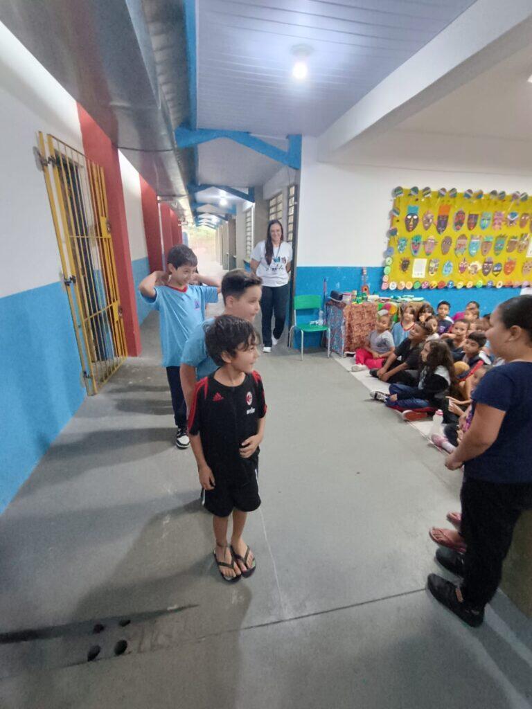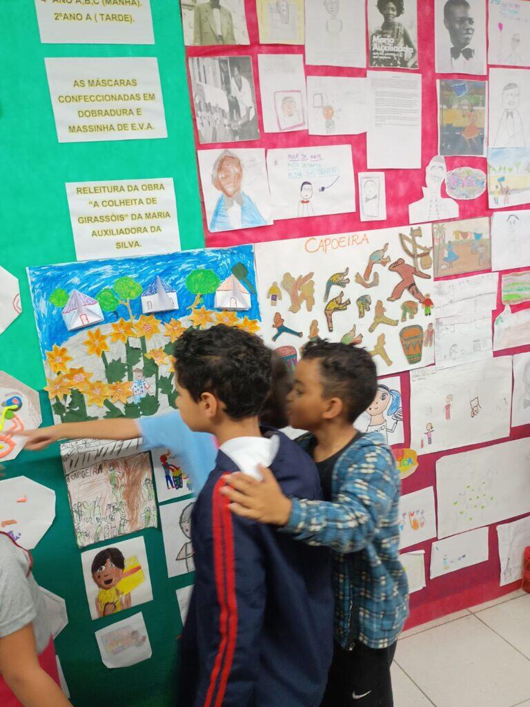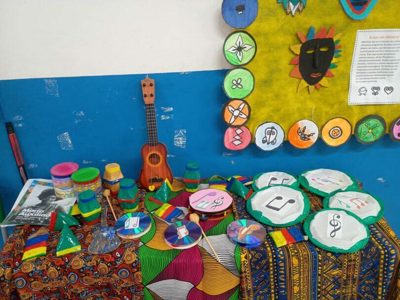A abertura do evento foi conduzida pelos professores de Arte Elton e Eliane, que apresentaram as produções artísticas desenvolvidas pelas crianças ao longo do projeto. As criações tiveram como ponto de partida as simbologias da arte africana, explorando elementos como os Adinkras, as máscaras, os ideogramas africanos, além da confecção de cartazes e instrumentos musicais. Os artistas Maria Auxiliadora e Heitor dos Prazeres inspiraram as propostas, fortalecendo o diálogo entre arte, identidade e cultura.