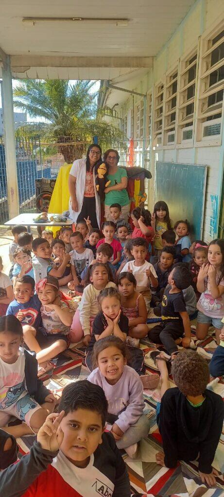 Para a creche o teatro foi realizado com o personagem João, o Cão Sabido, manipulado pela nutricionista Rosa, que participou da atividade. A Nutricionista Julieth responsável pela Unidade Escolar interagiu com os personagem e com as crianças. O enredo abordou, de forma lúdica, a importância da alimentação saudável, incentivando o consumo de frutas, verduras, arroz e feijão, além do equilíbrio no consumo de doces. Durante a apresentação, o Cão João revelou sua paixão por doces, mas também suas queixas de cansaço e dor de barriga. Foi então que a nutricionista Julieth, mostrou que esses problemas estavam ligados à má alimentação. De forma lúdica, eles explicaram que frutas, verduras, arroz e feijão são como um verdadeiro “feitiço da comida de verdade”, que dão força, energia e disposição para brincar, estudar e crescer saudável.