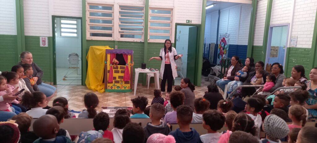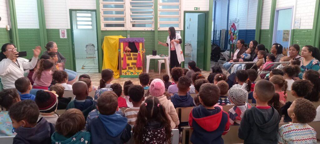 No dia 23/10/2025 foi realizado o Teatro de Fantoches pelas Nutricionistas Rosa e Julieth, sendo dividido entre a creche e a pré-escola.