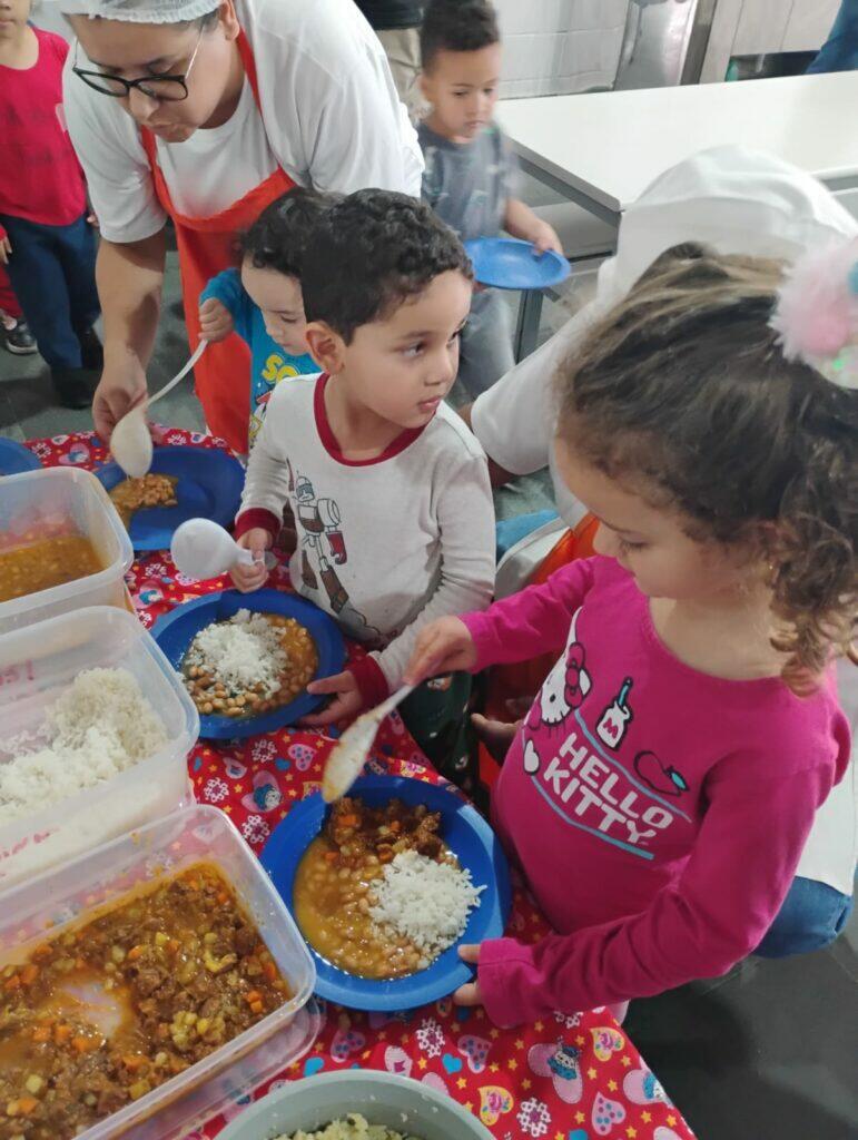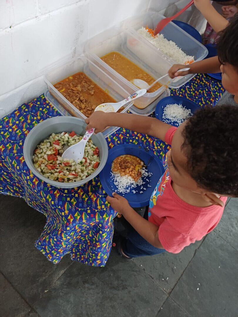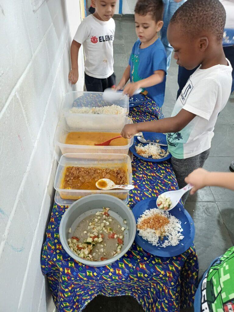 O auto serviço também favorece o diálogo e o respeito às diferenças, já que as crianças observam e aprendem com as escolhas dos colegas, compreendendo que cada um tem preferências e ritmos próprios. Essa prática amplia a compreensão do cuidado consigo e com o outro, tornando o momento da refeição ainda mais educativo.