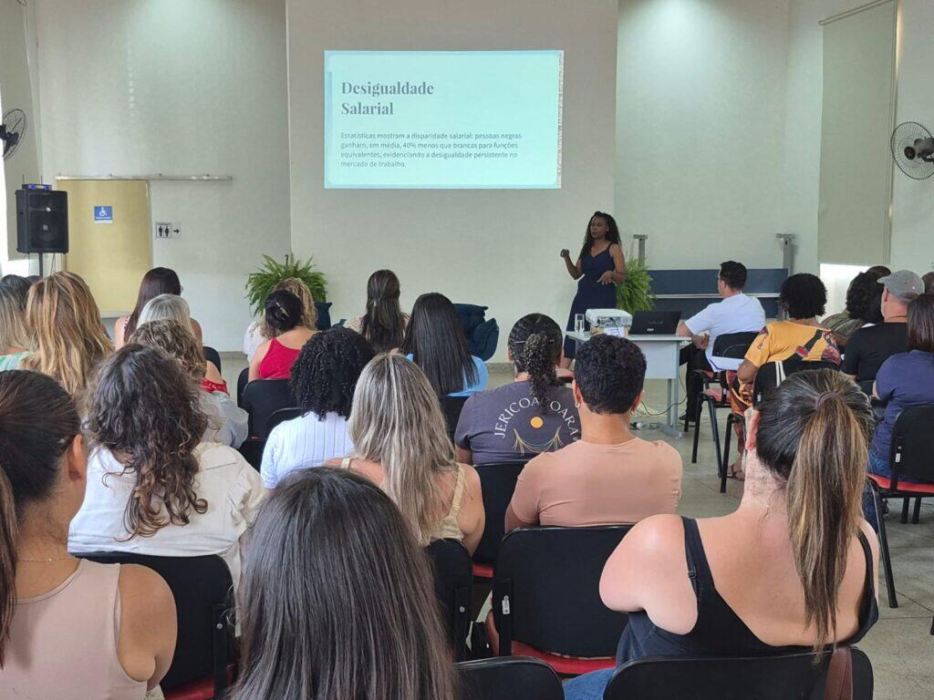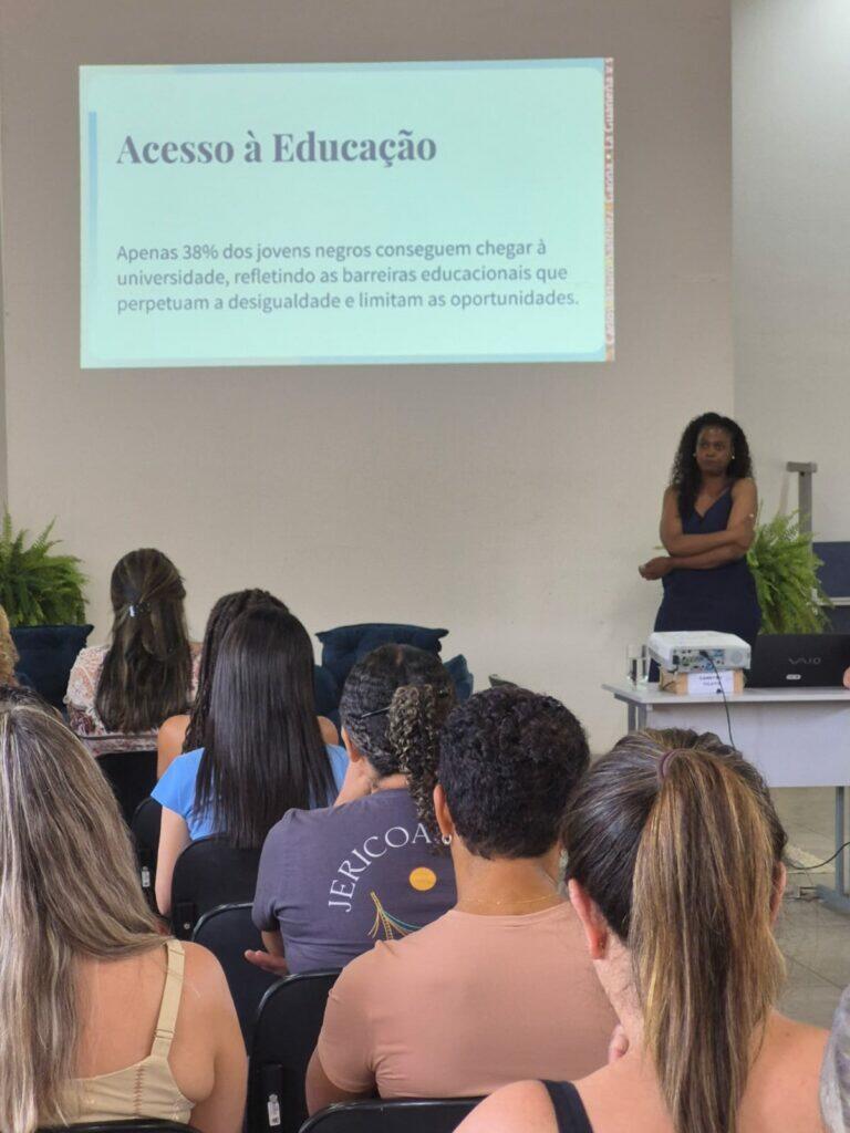 Durante a palestra, foram abordadas reflexões fundamentais sobre o reconhecimento das desigualdades raciais, os mecanismos legais de enfrentamento ao racismo e a importância do papel das instituições educativas na construção de uma sociedade mais justa e igualitária.