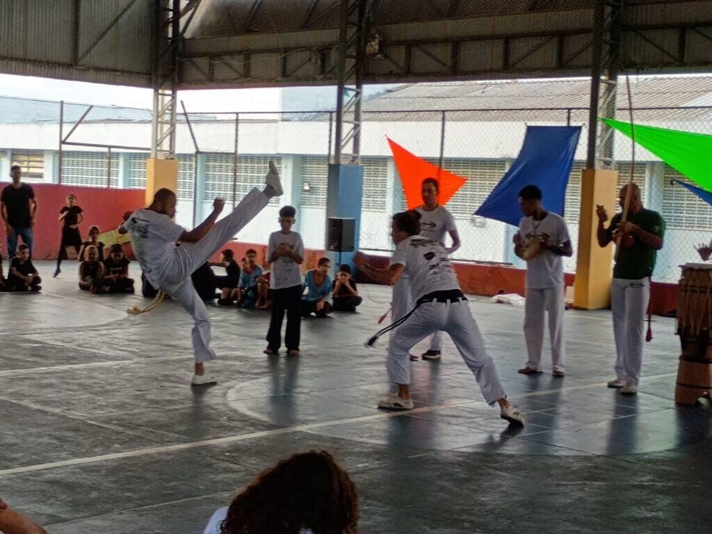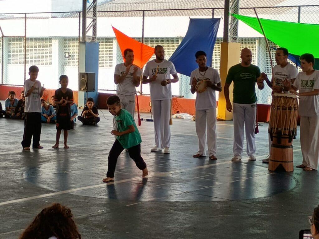 No período da tarde, os estudantes puderam apreciar encenações, cantos africanos e danças, além de vivenciarem a brincadeira da amarelinha africana. O encerramento ficou por conta da vibrante apresentação do grupo de Capoeira Yorubá, que proporcionou uma rica experiência cultural e de valorização das tradições afro-brasileiras. ❤️✨