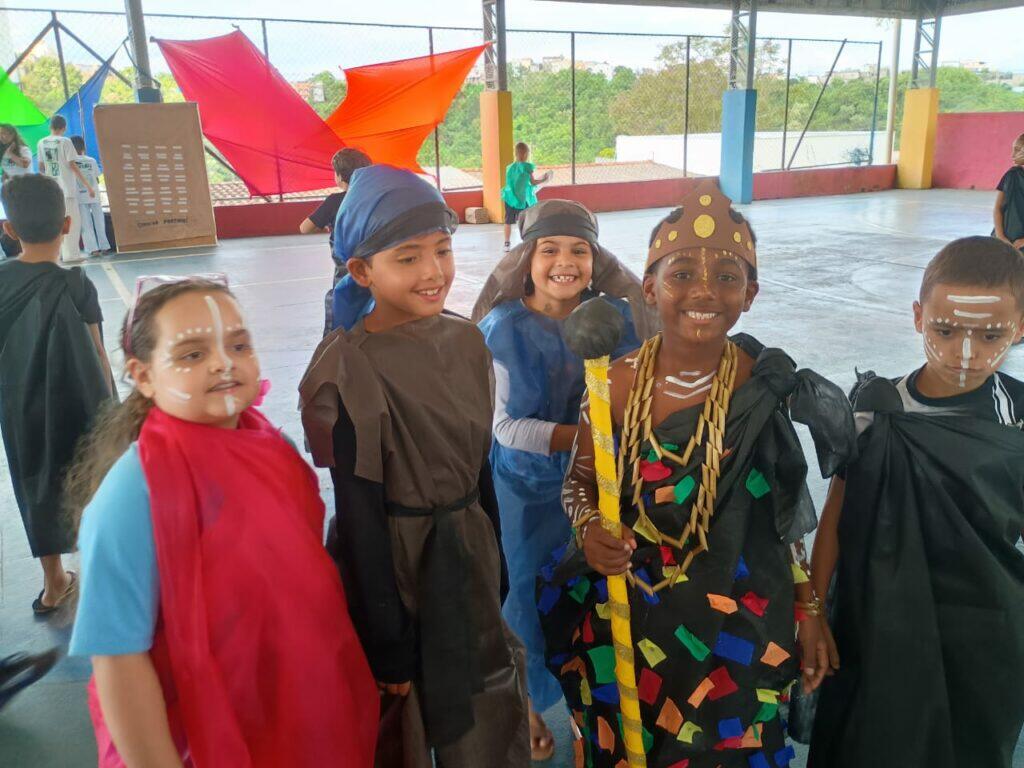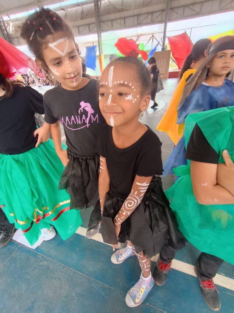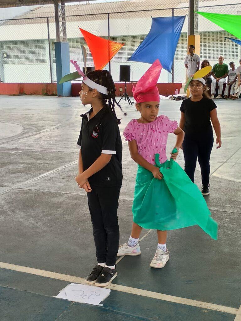 As apresentações ocorreram em dois períodos. Pela manhã, sob a condução dos Arte-Educadores Francisco e Alessandra, as crianças cantaram e dançaram “O Canto das Três Raças”, com a presença e participação de familiares, tornando o momento ainda mais especial.