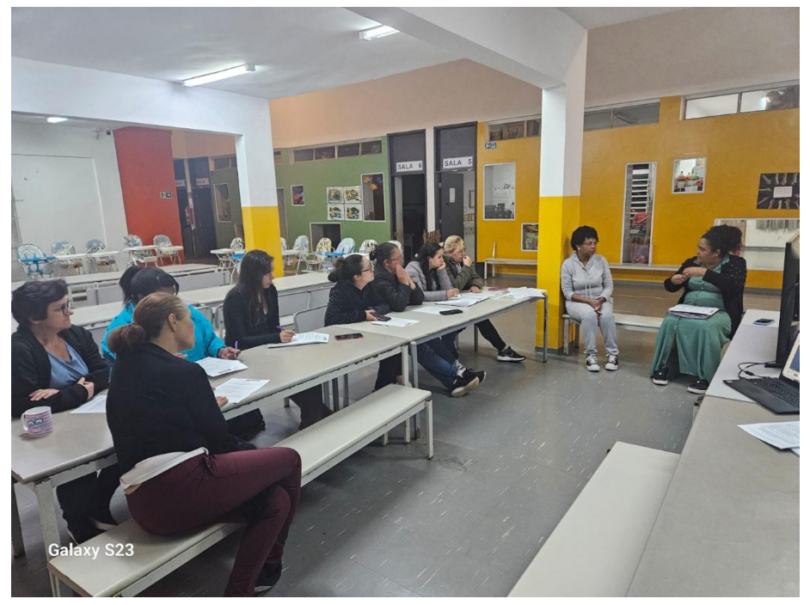 O encontro formativo teve como foco a apresentação de slides sobre Atividades Adaptadas, proporcionando aos professores um espaço de aprendizado, reflexão e vivências práticas relacionadas à educação inclusiva.