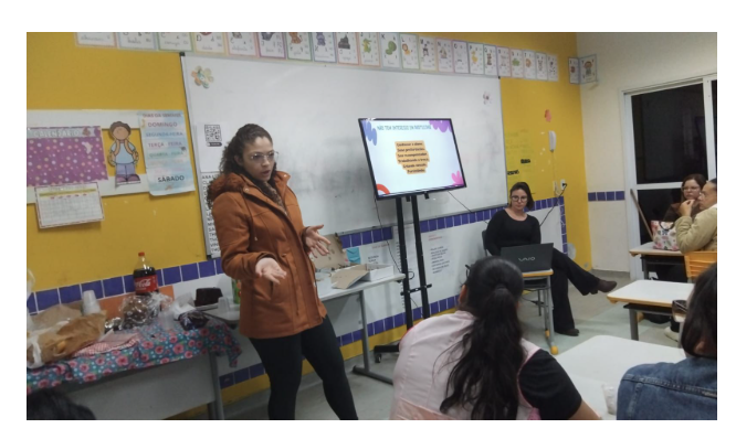 Os encontros foram organizados de forma a dialogar diretamente com a realidade das escolas, trazendo ideias reais, práticas e aplicáveis ao cotidiano docente. Durante as formações, foram apresentados slides explicativos, além de sugestões de adaptações pedagógicas, exemplos de recursos que podem ser implementados em sala e materiais que favorecem uma comunicação mais efetiva com os estudantes que necessitam de apoio alternativo.