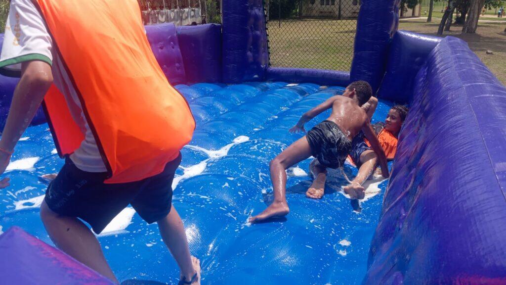 Entre as propostas desenvolvidas estavam: construção de brinquedos com elementos naturais, brincadeiras com água, jogos cooperativos ao ar livre, desafios motores e momentos de livre exploração do ambiente. As crianças puderam correr, subir, equilibrar-se, imaginar e criar, fortalecendo vínculos sociais e exercitando a criatividade.