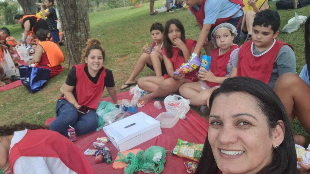 Os estudantes participantes do Projeto de Recuperação Parceiros da Aprendizagem vivenciaram, no CIECEL, um dia de experiências pedagógicas integradas, envolvendo todas as escolas de Ensino Fundamental da rede. A atividade teve como foco o brincar na natureza, compreendido como um direito da criança e uma prática essencial para o desenvolvimento integral.