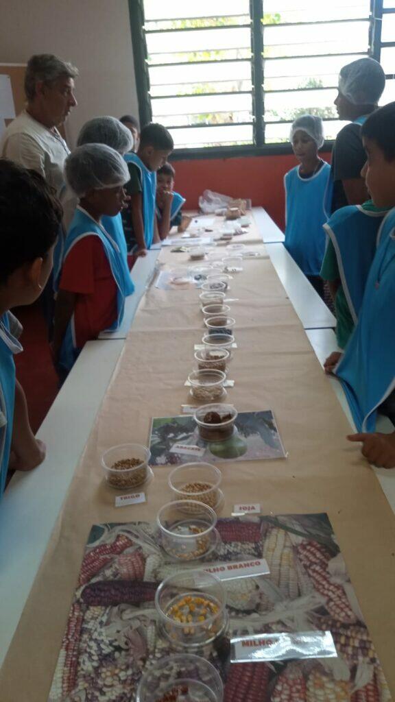 Durante a vivência, os alunos tiveram contato com diferentes brinquedos e materiais naturais, explorando folhas, galhos, sementes, água, terra e pedras de forma criativa e investigativa. As atividades foram organizadas em estações de experimentação, permitindo que cada grupo circulasse pelos espaços, ampliando sua curiosidade, autonomia e interação.