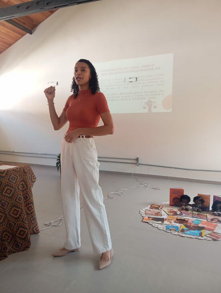 Durante a exposição, foram abordados temas como a valorização das identidades, o enfrentamento às desigualdades raciais e o papel da escola na promoção de um ambiente inclusivo e acolhedor. A palestrante destacou ainda a necessidade de formar profissionais conscientes e comprometidos com a equidade racial, reforçando que a educação tem papel central na construção de uma sociedade mais justa.