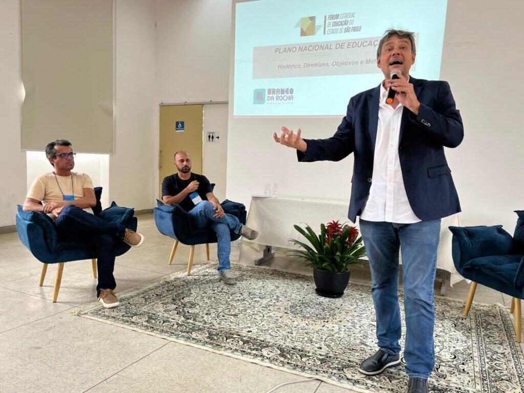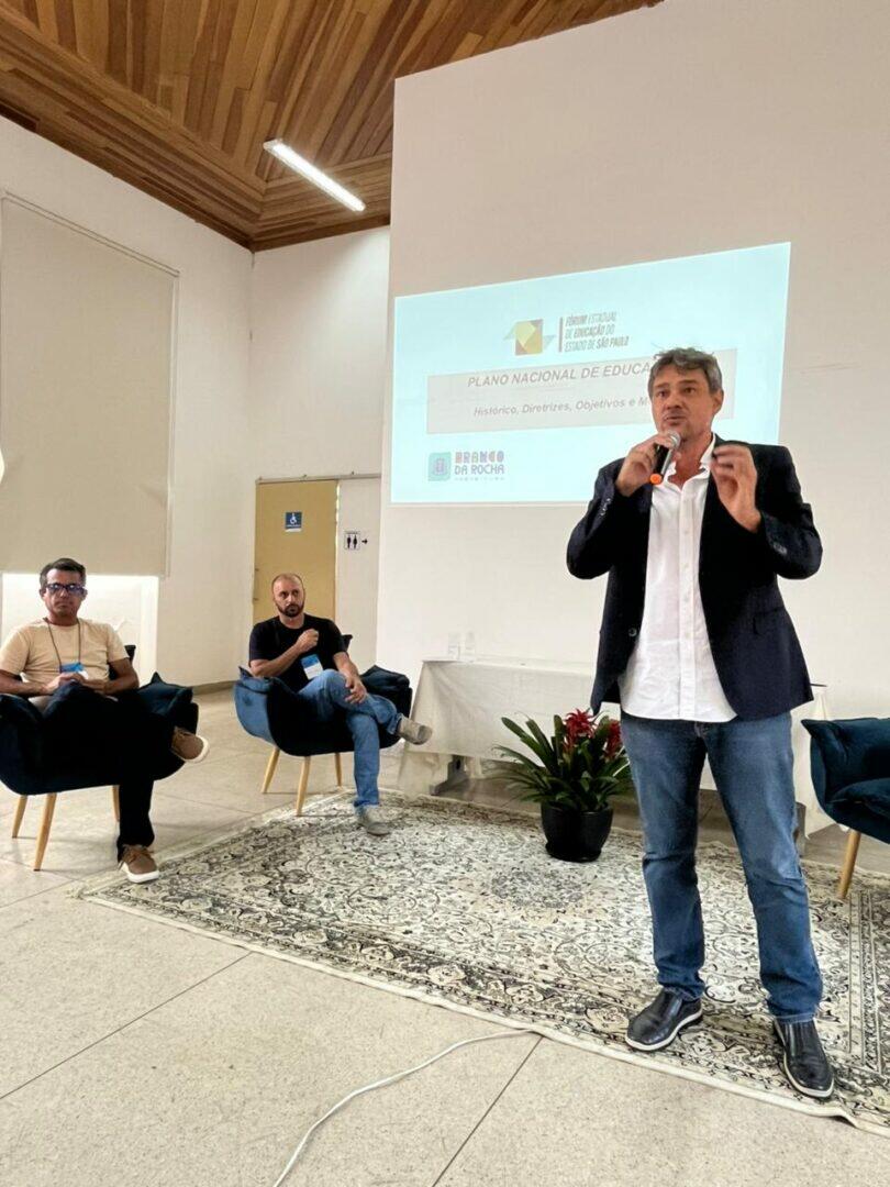 Em sua palestra de abertura, o professor Leandro apresentou reflexões fundamentais sobre os desafios contemporâneos da educação pública, o papel dos fóruns de controle social, a garantia de financiamento adequado e o compromisso coletivo com o cumprimento das metas e estratégias previstas nos planos de educação. Sua contribuição reforçou a necessidade de construção colaborativa e contínua, ancorada em evidências, legislação vigente, participação social e defesa da educação pública como direito de todas e todos.