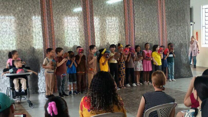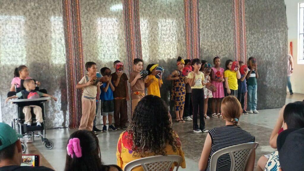 A abertura do evento foi conduzida com carinho e dedicação pela professora de Arte Bruna, que apresentou os trabalhos desenvolvidos com as crianças ao longo do ano a partir das culturas e simbologias da arte africana e afro-brasileira.