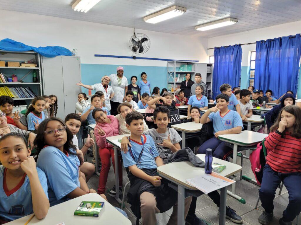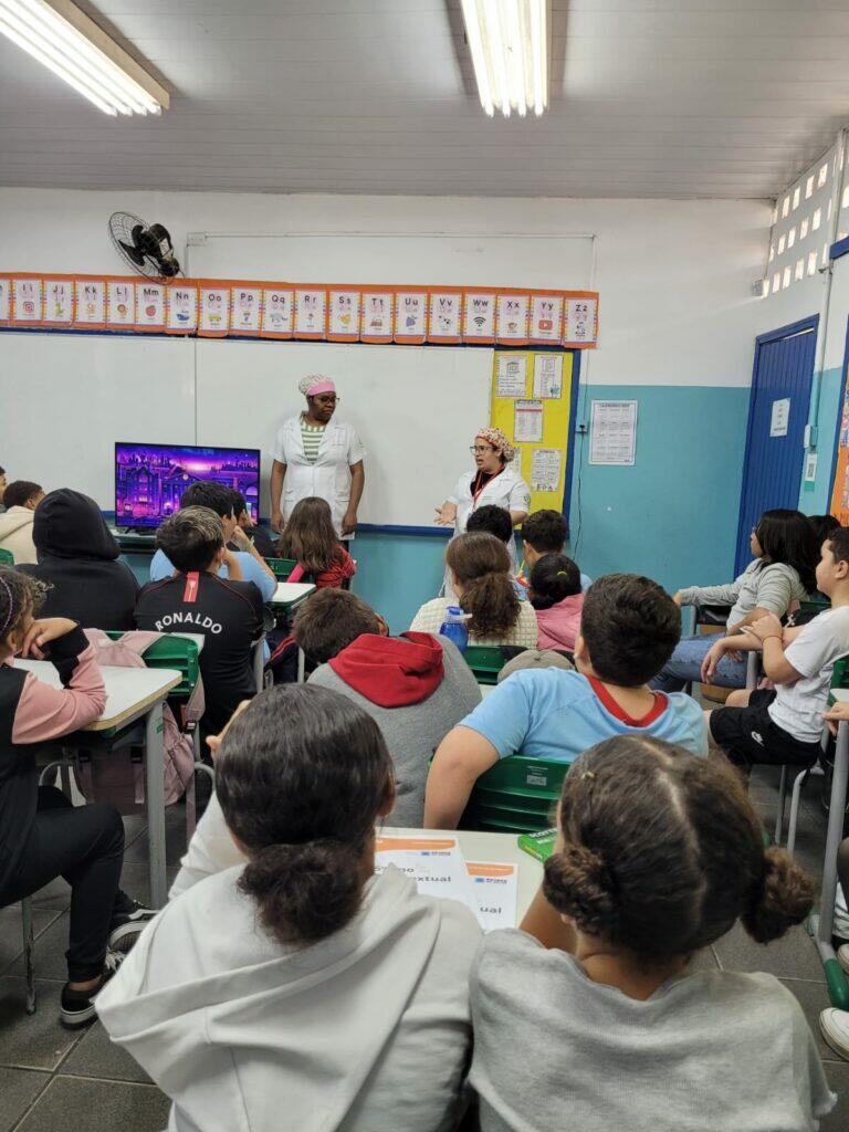 Dito isso, com o objetivo de conscientizar os alunos sobre uma alimentação adequada e saudável, foi realizada uma dinâmica de “Bate-papo com as Nutris” na EMEB Nilza Dias Mathias com as Nutricionistas Fabiana e Gisele para compartilhar o conhecimento e sanar as dúvidas dos estudantes referente a esse tema e para que saibam fazer escolhas alimentares mais conscientes.