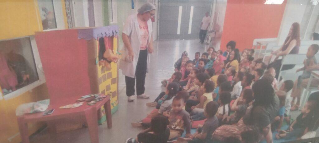 Para a creche o teatro foi realizado com o personagem João o Cão Sabido, manipulado pela nutricionista Rosa, que participou da atividade. A Nutricionista Julieth responsável pela Unidade Escolar interagiu com os personagem e com as crianças. O enredo abordou, de forma lúdica, a importância da alimentação saudável, incentivando o consumo de frutas, verduras, arroz e feijão, além do equilíbrio no consumo de doces. Durante a apresentação, o Cão João revelou sua paixão por doces, mas também suas queixas de cansaço e dor de barriga. Foi então que a nutricionista Julieth, mostrou que esses problemas estavam ligados à má alimentação. De forma lúdica, eles explicaram que frutas, verduras, arroz e feijão, que dão força, energia e disposição para brincar, estudar e crescer saudável.