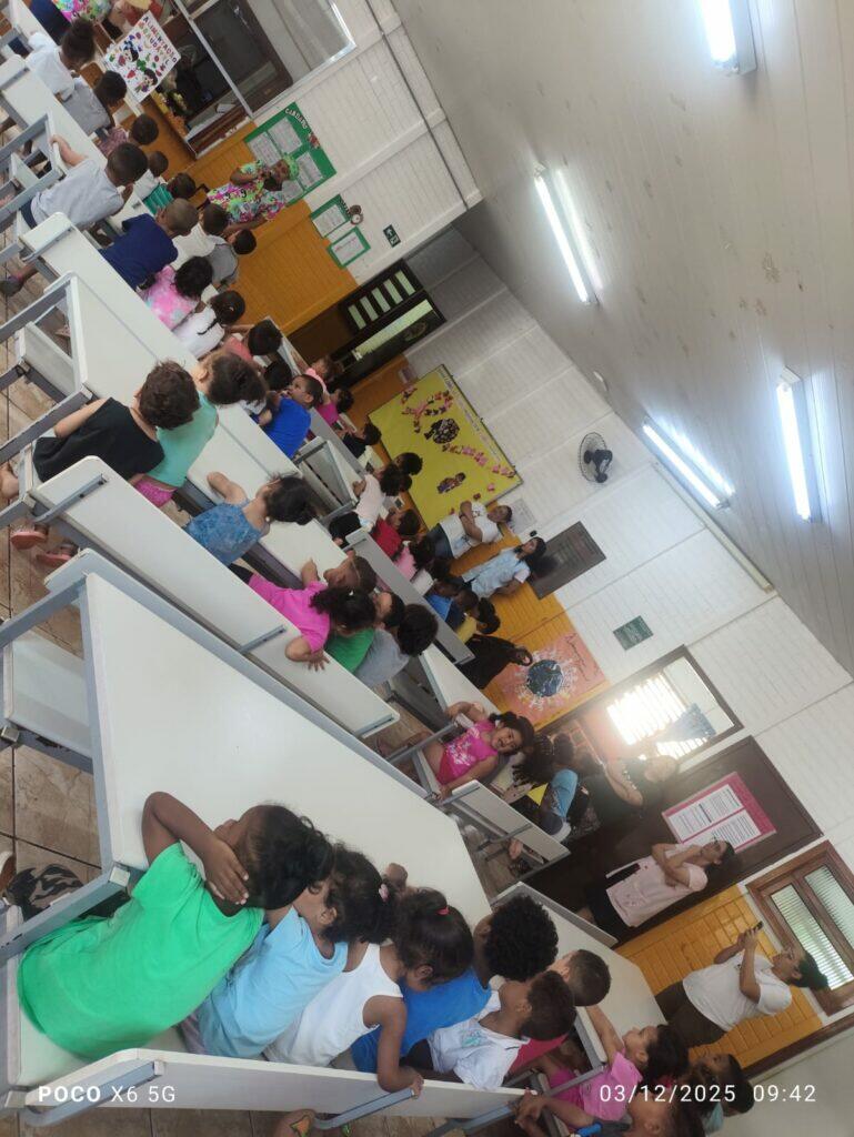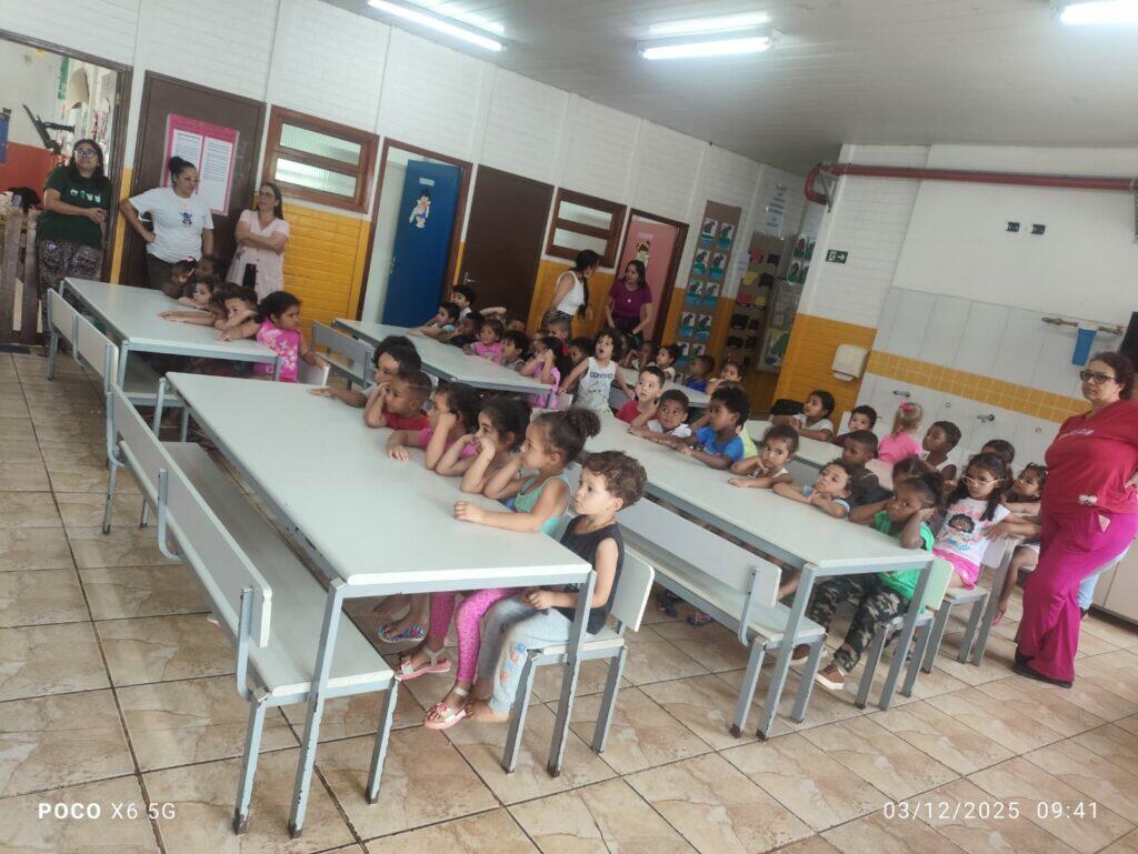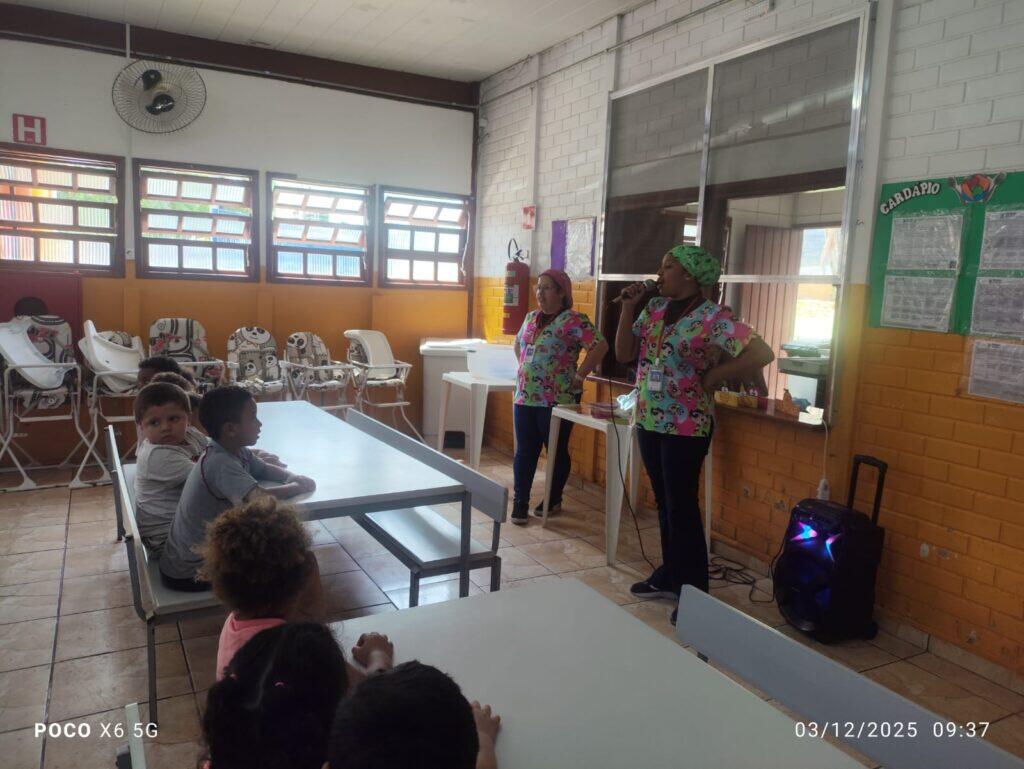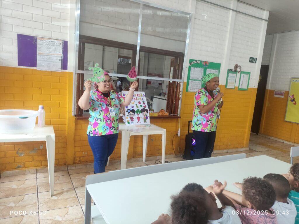 No dia 03/12, foi realizado o Projeto de Educação Alimentar e Nutricional (EAN) na EMEB Teresa Barquetta com as Nutricionistas Natália Coelho e Fabiana com o objetivo de conscientizar os estudantes sobre uma alimentação saudável, utilizando ferramentas lúdicas de acordo com a faixa etária atendida.