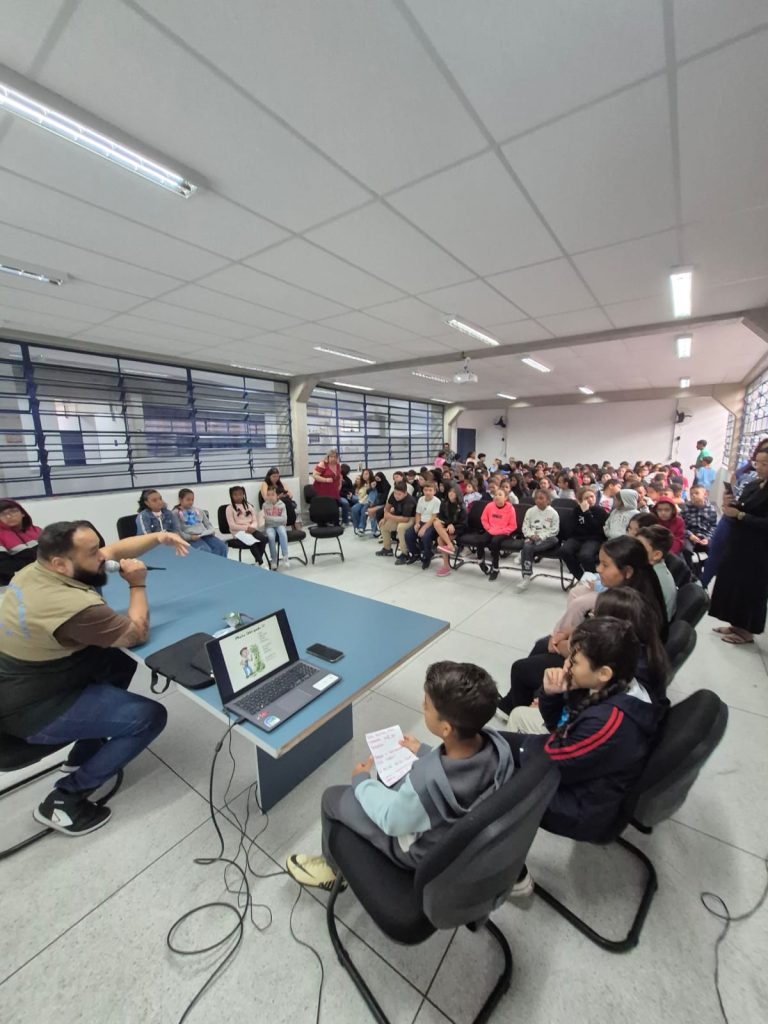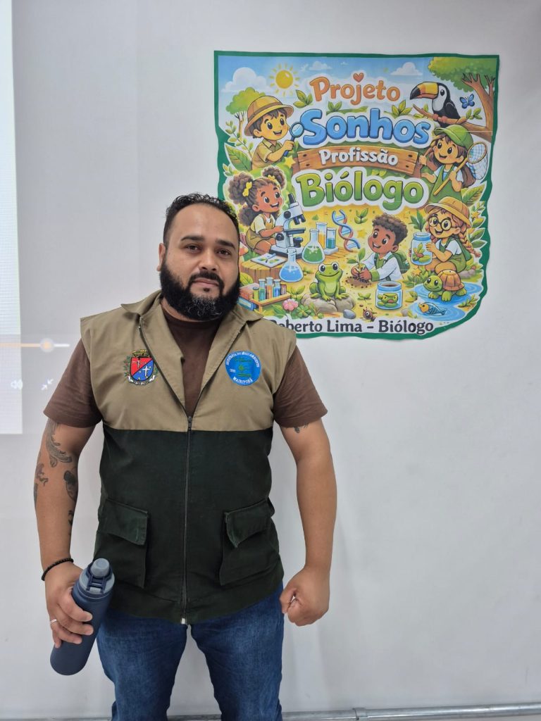 Para marcar a abertura do projeto, recebemos o biólogo Roberto da Silva Lima, que compartilhou suas experiências profissionais e destacou a importância da preservação da natureza e dos seres vivos. O encontro contou com grande participação e curiosidade das crianças, tornando a aprendizagem ainda mais significativa.
