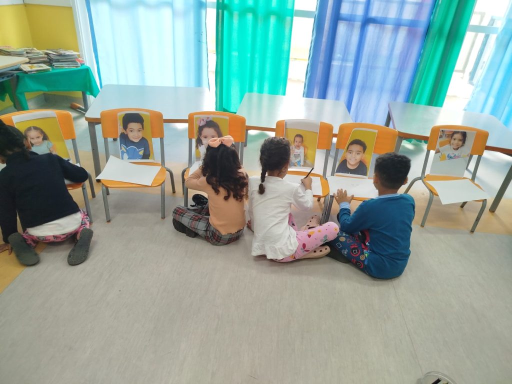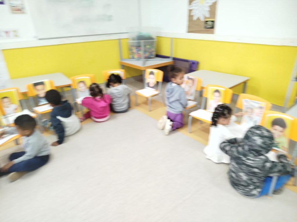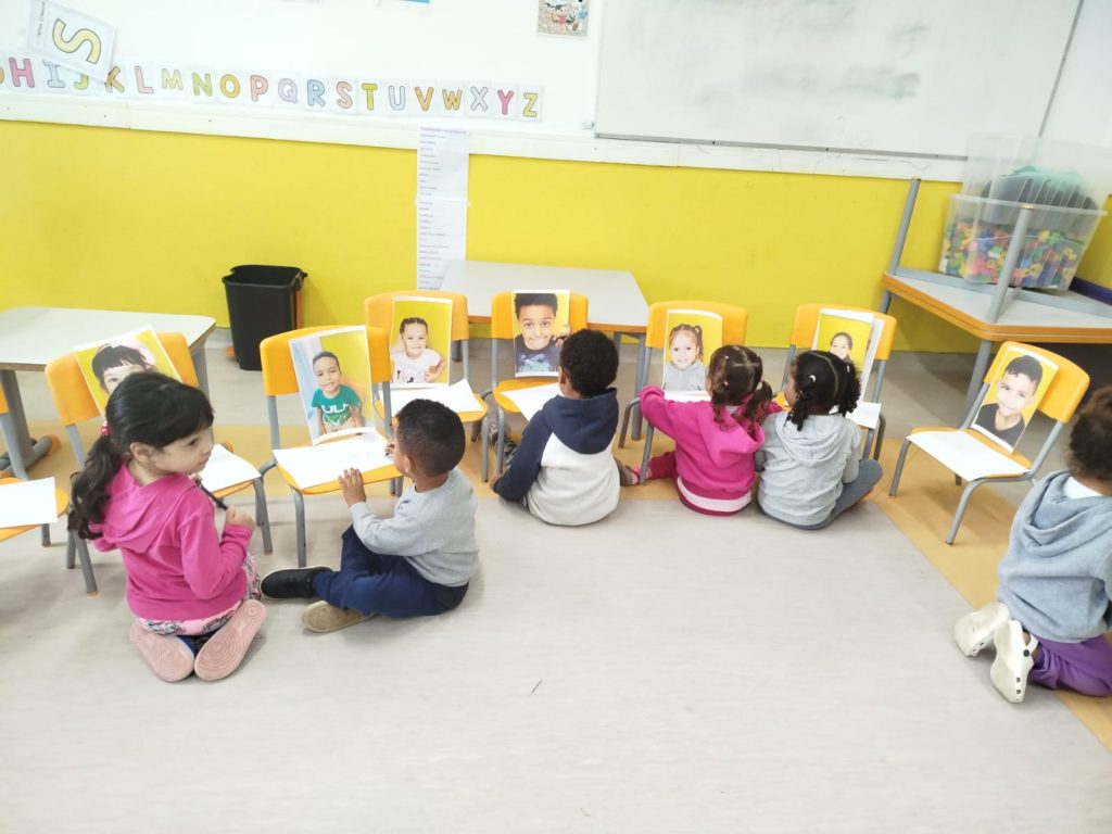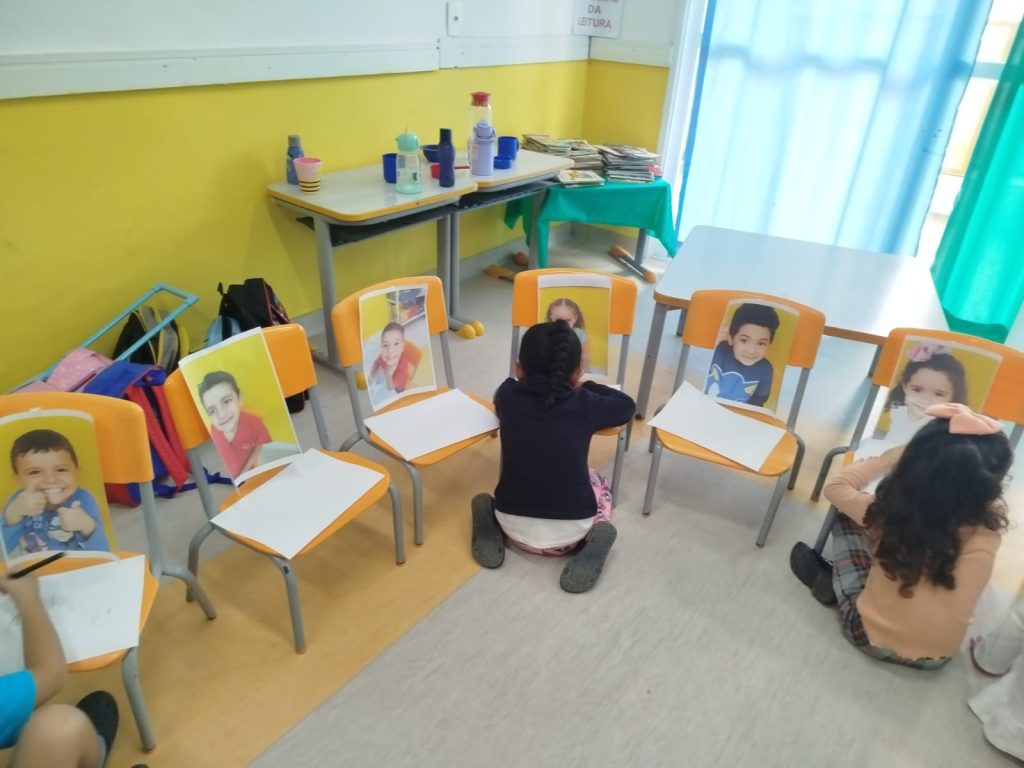 O entusiasmo e a alegria foram nítidos ao encontrarem suas próprias imagens ali, esperando por eles. Esse momento de curiosidade foi o ponto de partida para que cada criança olhasse para si com mais atenção.