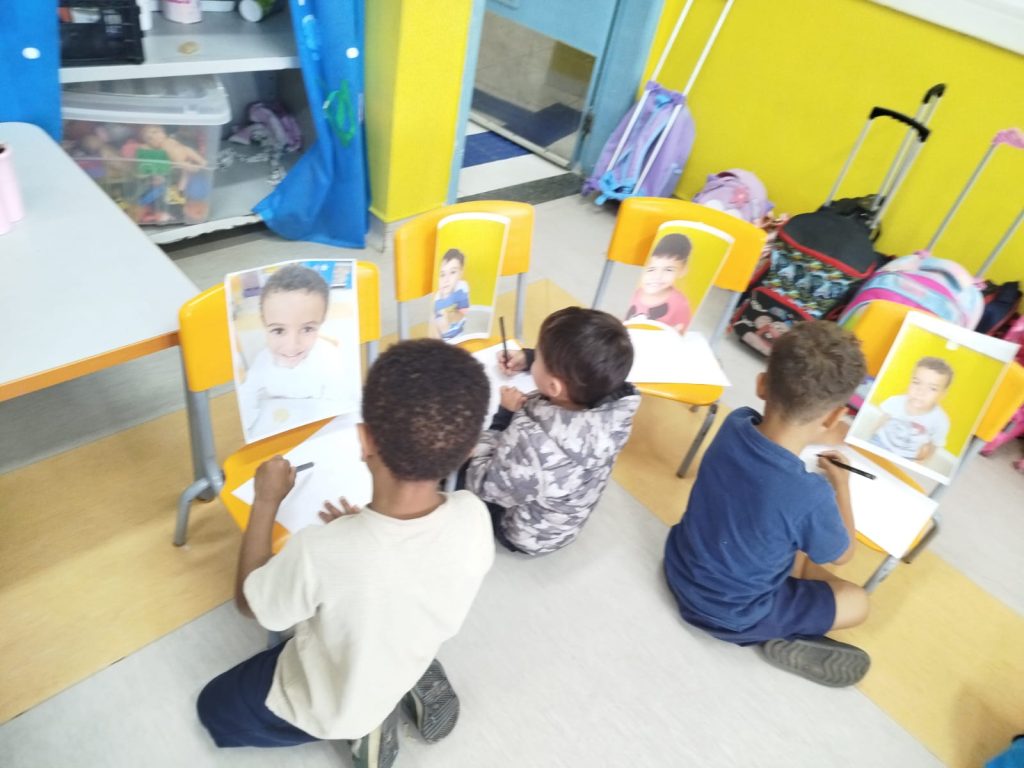 Além de trabalharmos a coordenação e o desenho, reforçamos a autoestima e o reconhecimento de si mesmo, valorizando a identidade de cada criança