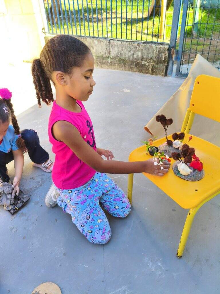 A professora Simone, da turma Nível II – A, da EMEB José Mauro de Vasconcelos, proporcionou às crianças uma experiência investigativa marcada por sensibilidade, descobertas e encantamento no espaço do solário.