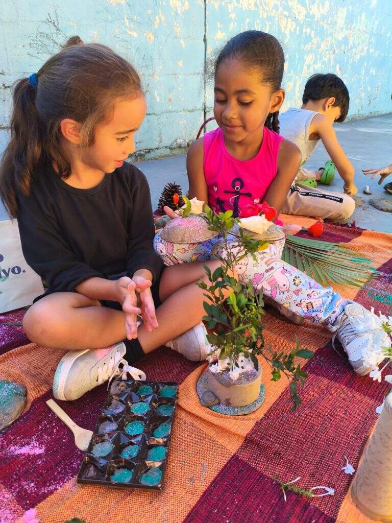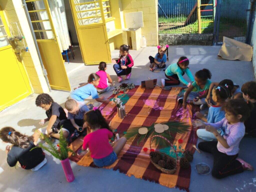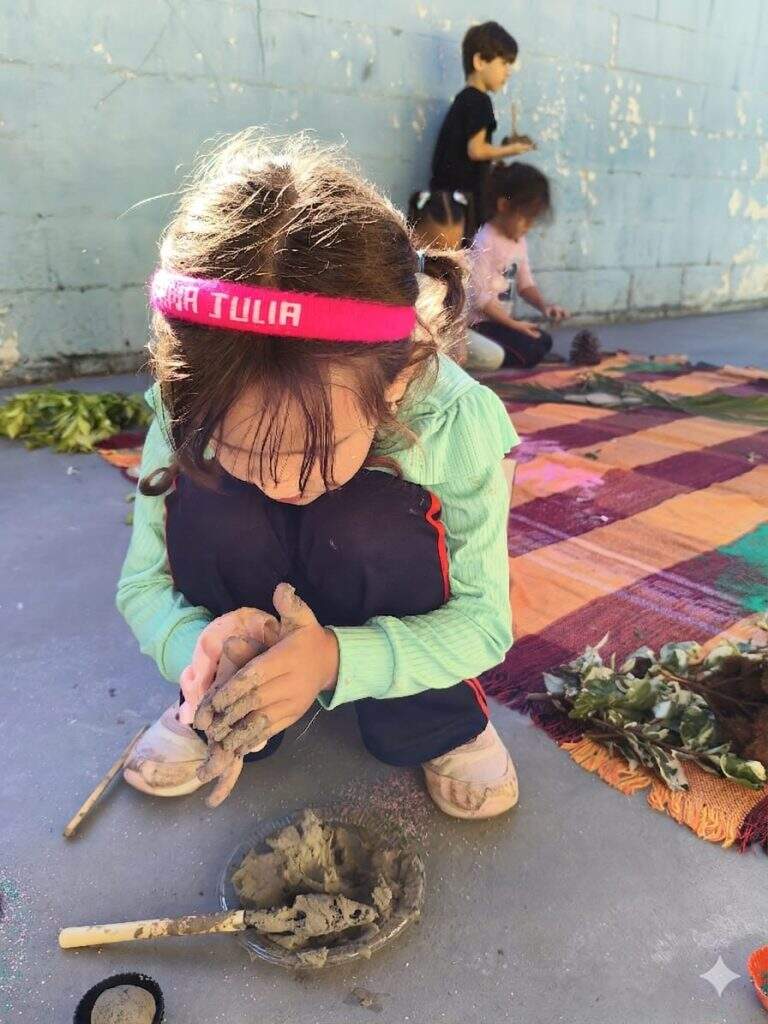 Desde o início, foi possível perceber o envolvimento do grupo com a vivência. As crianças participaram de forma espontânea, explorando os elementos com interesse e atenção. Mais do que palavras, seus gestos, expressões e movimentos revelavam a intensidade da experiência. Os olhares atentos e as mãos em ação mostravam o quanto estavam imersas naquele momento de descoberta.