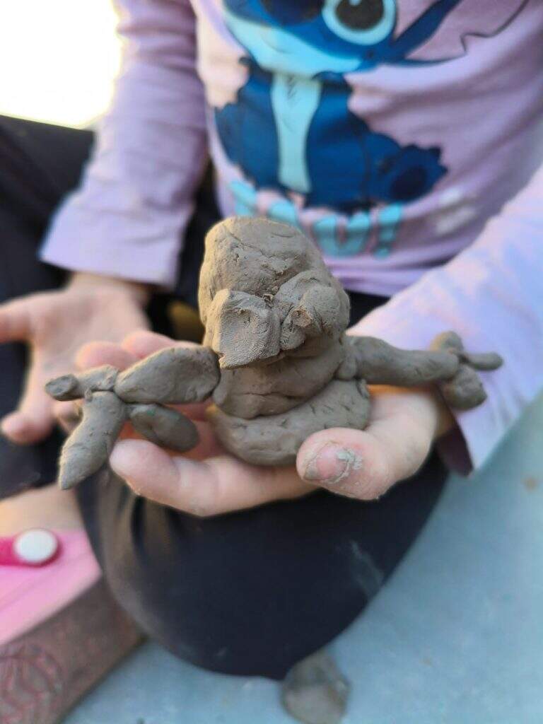 Durante a atividade, algumas falas traduziram a alegria e o significado da proposta. Alice, ao observar sua criação, compartilhou com entusiasmo: “Eu fiz um monstro”. Já Laura, depois de criar um bolo com uma árvore, disse com emoção: “Prô, hoje é o dia mais feliz da minha vida”. A vivência foi um convite sensível para explorar, imaginar e sentir, valorizando as múltiplas formas de expressão das crianças e tornando o espaço educativo ainda mais significativo