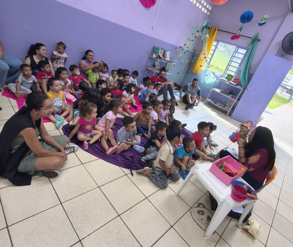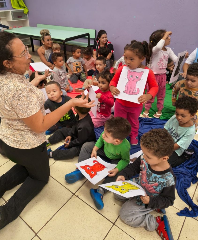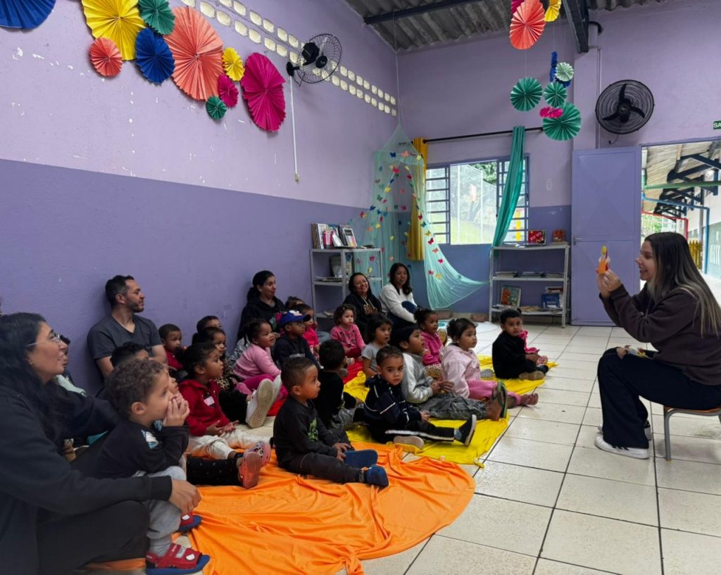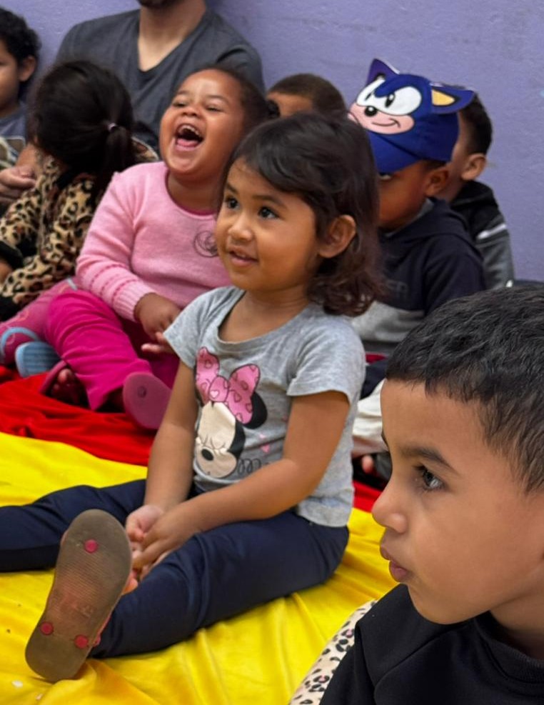 Durante a atividade, as crianças mergulharam no universo da literatura com olhares atentos, curiosidade e muita sensibilidade, demonstrando interesse a cada detalhe da história apresentada. Expressões de surpresa, sorrisos e envolvimento revelaram o quanto esse momento foi significativo para todos.