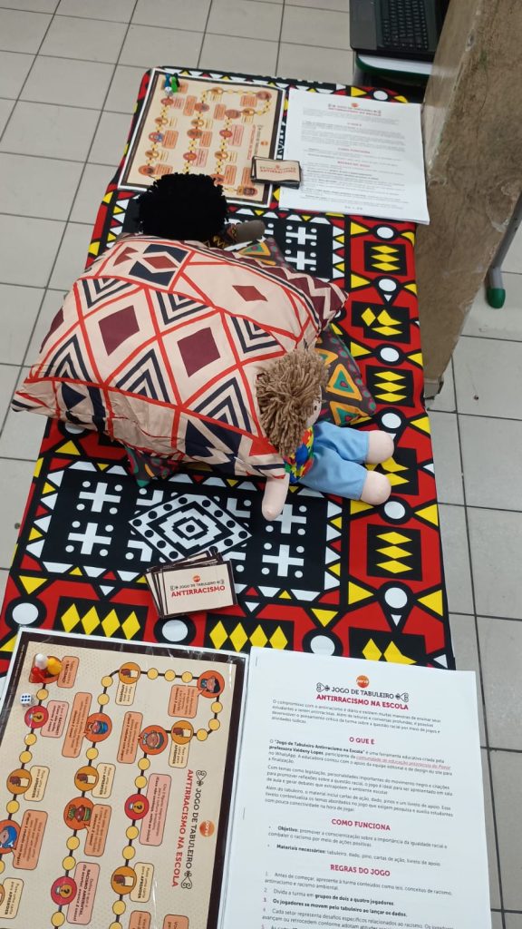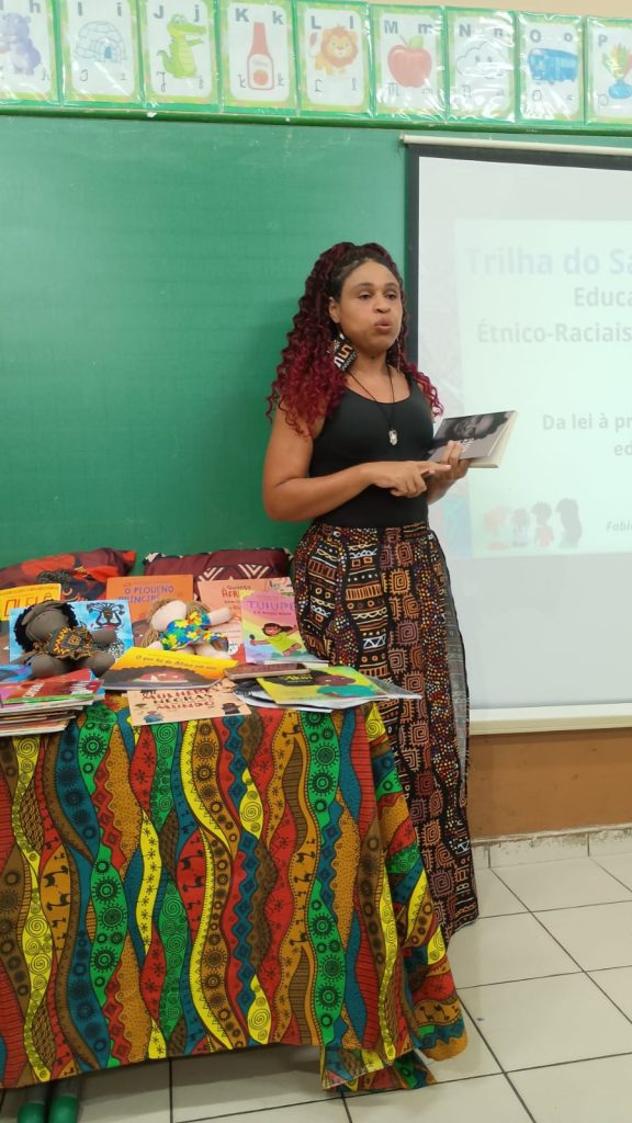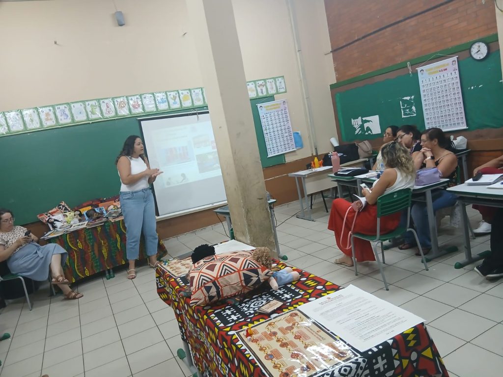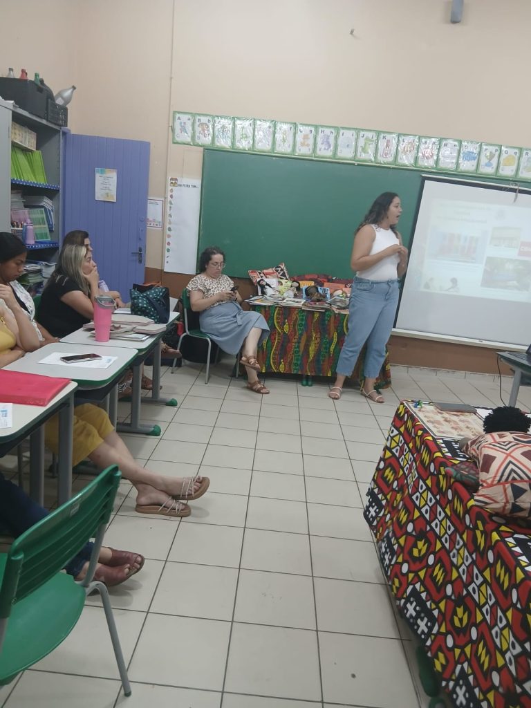 Além disso, o momento formativo favoreceu a escuta, o diálogo e a reflexão sobre a prática pedagógica, bem como a apresentação de livros literários com protagonismo negro e indígena, além de jogos educativos e outros recursos pedagógicos que contribuem para o desenvolvimento de ações voltadas à valorização da diversidade cultural, visando ao pleno desenvolvimento dos estudantes e à importância do trabalho com toda a comunidade escolar na prevenção e no enfrentamento do racismo e de qualquer forma de discriminação.