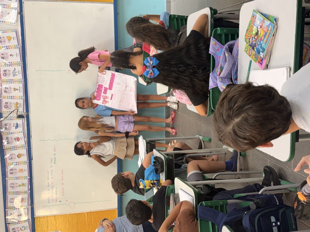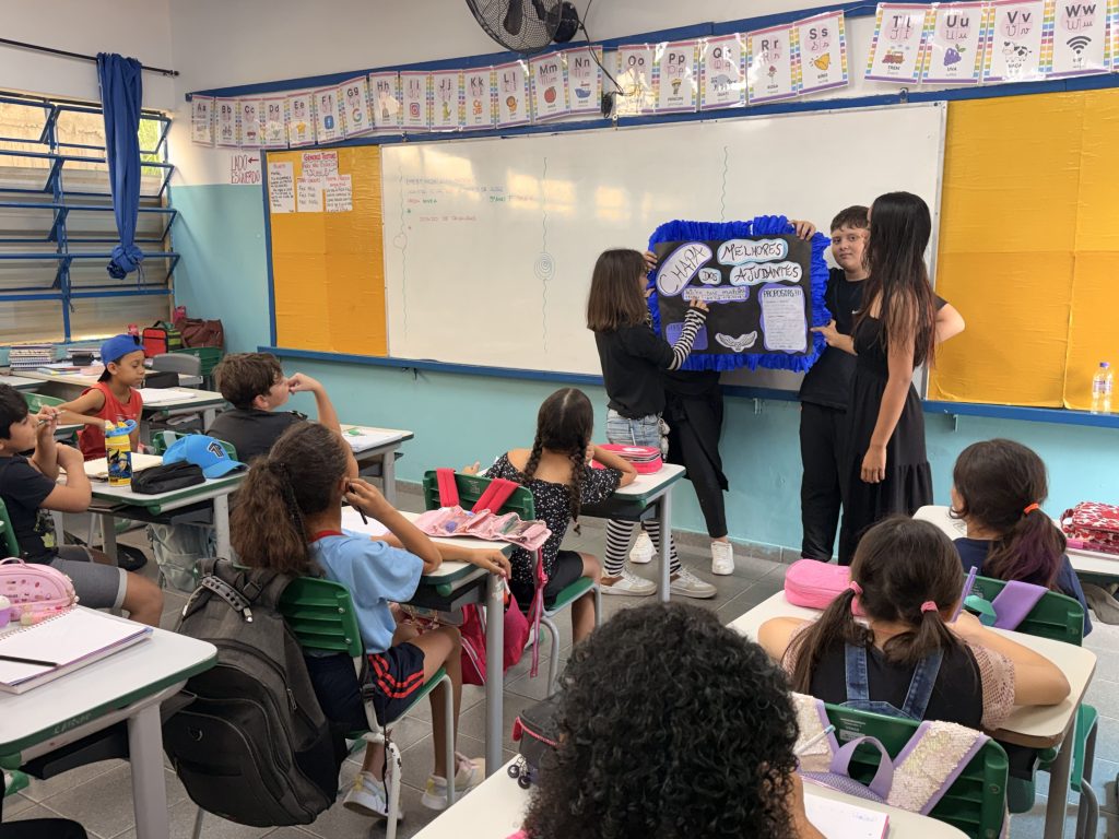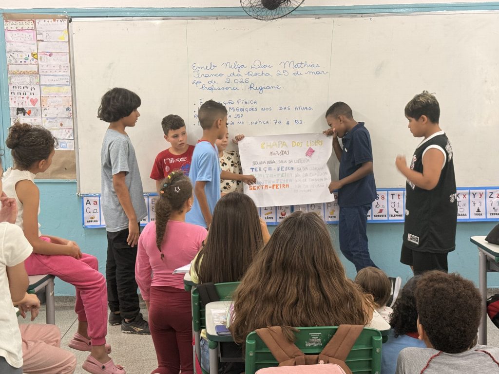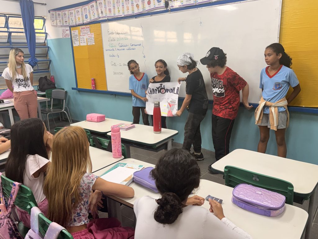 Para participar, os alunos realizaram a inscrição e organizaram suas chapas. Em seguida, elaboraram suas propostas e as apresentaram para as turmas dos períodos da manhã e da tarde, exercitando a comunicação, a argumentação e o trabalho em equipe.