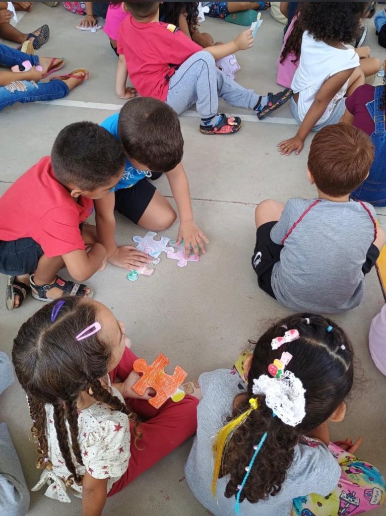 Para completar a vivência, realizamos uma atividade de pintura em peças de quebra-cabeça. A proposta foi refletir que, assim como cada peça é única e importante, cada um de nós também tem seu valor. E, quando estamos juntos, tudo se encaixa e faz mais sentido.