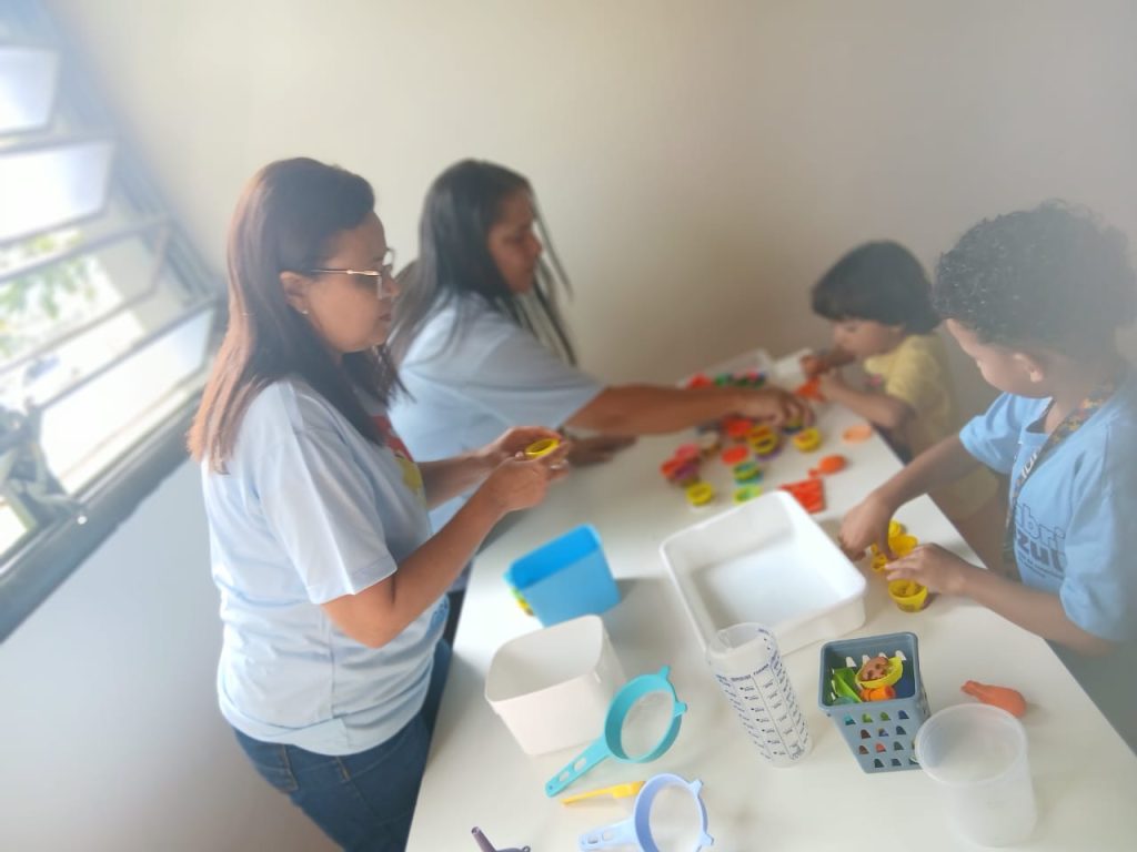 As crianças se encantaram com as brincadeiras populares e a cama elástica, além de explorarem espaços preparados especialmente para elas. Na sala sensorial, puderam vivenciar diferentes estímulos; no espaço de leitura, participaram de contação de histórias, cantigas e brincadeiras dançadas; e na oficina, confeccionaram um boneco sensorial, atividade que despertou curiosidade, criatividade e envolvimento .