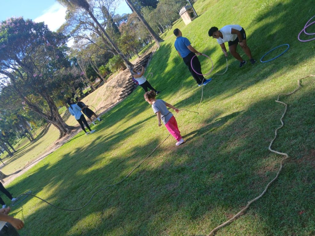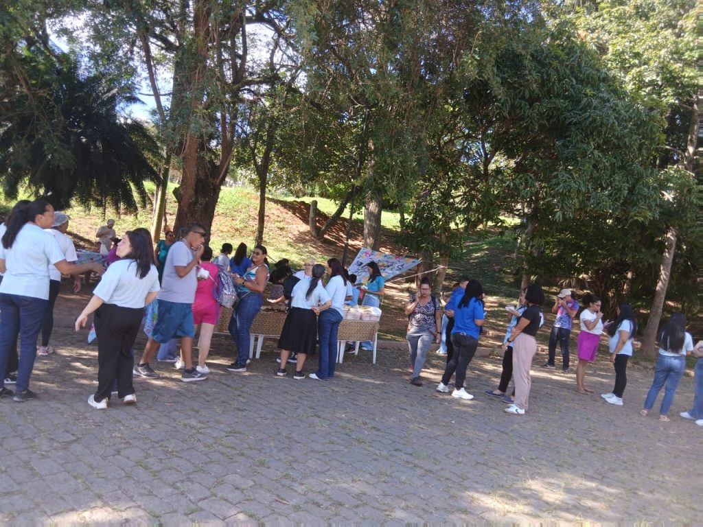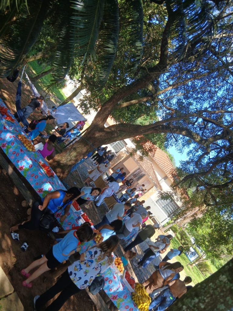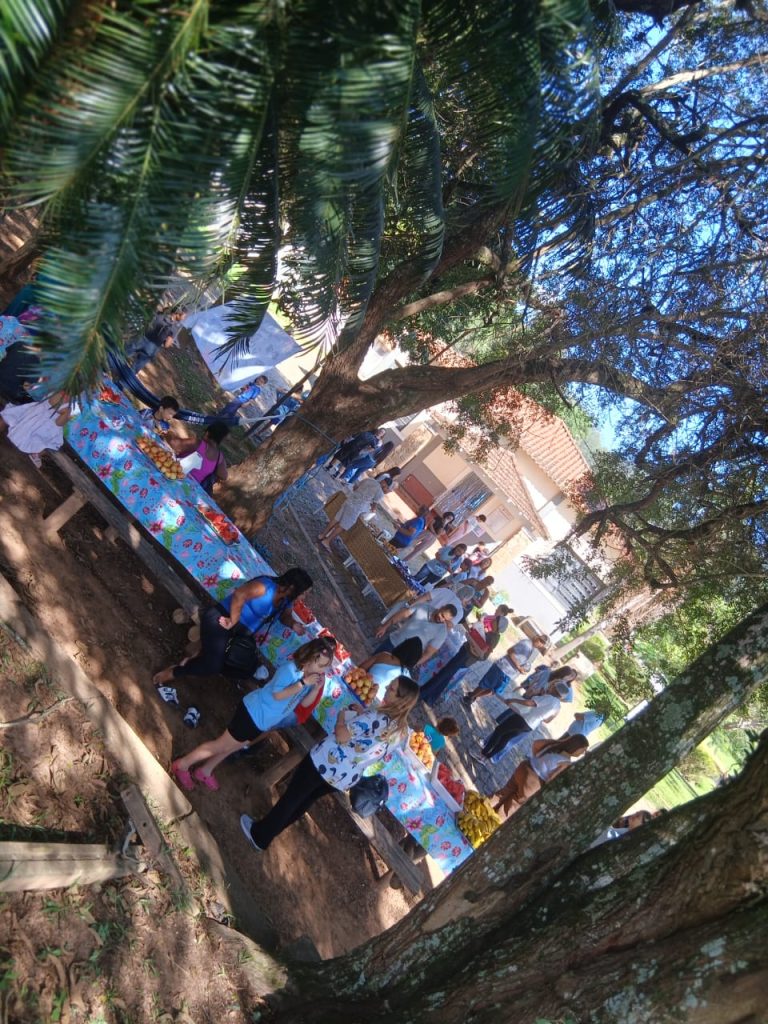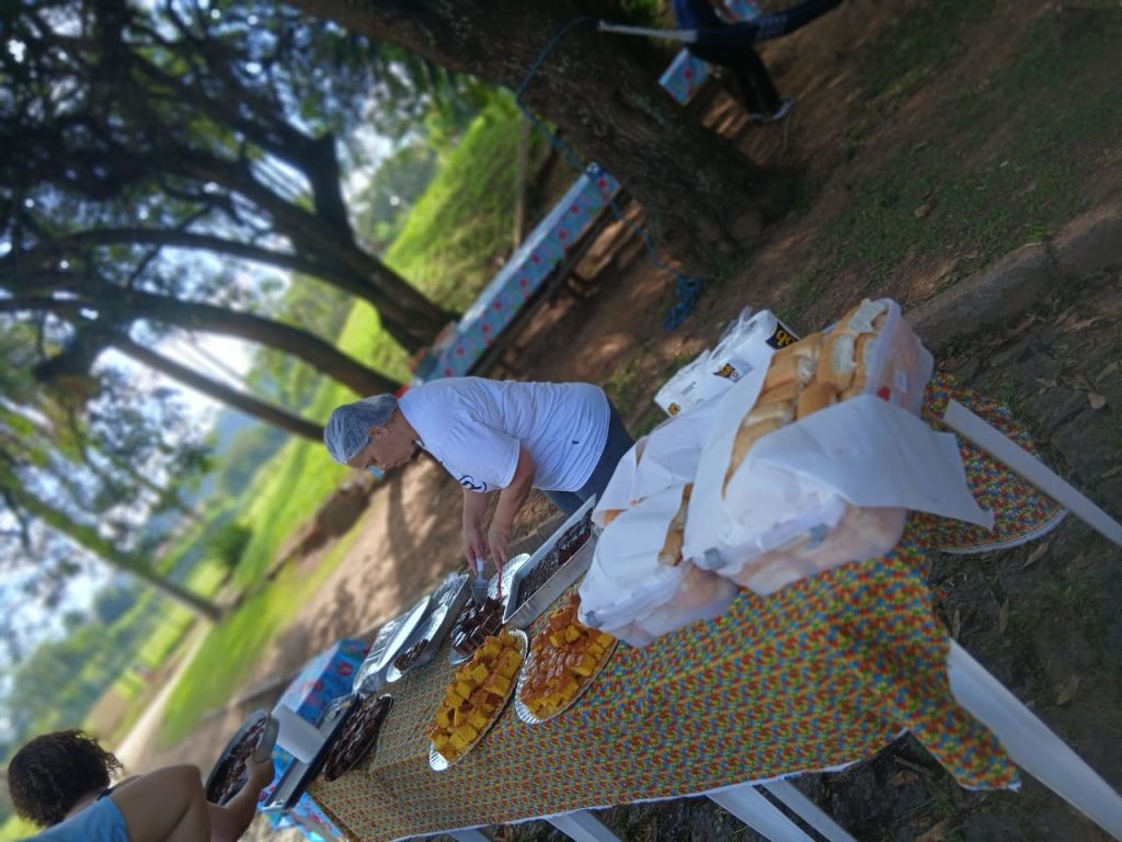 Outro momento muito apreciado foi o piquenique, com um cardápio preparado com carinho, incluindo bolo de cenoura, bolo de chocolate, suco, torta, pão com manteiga e frutas, proporcionando um momento de partilha e convivência entre todos .