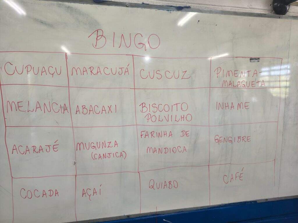 alimentos de origem indígena e africana e, posteriormente, de um bingo temático,
