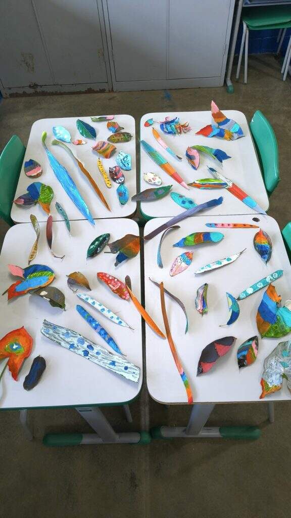 escola, um exemplo é o mobile feito com folhas naturais e brincadeiras ao ar livre.
