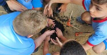 As crianças participam de atividades onde exploram toda a natureza da própria